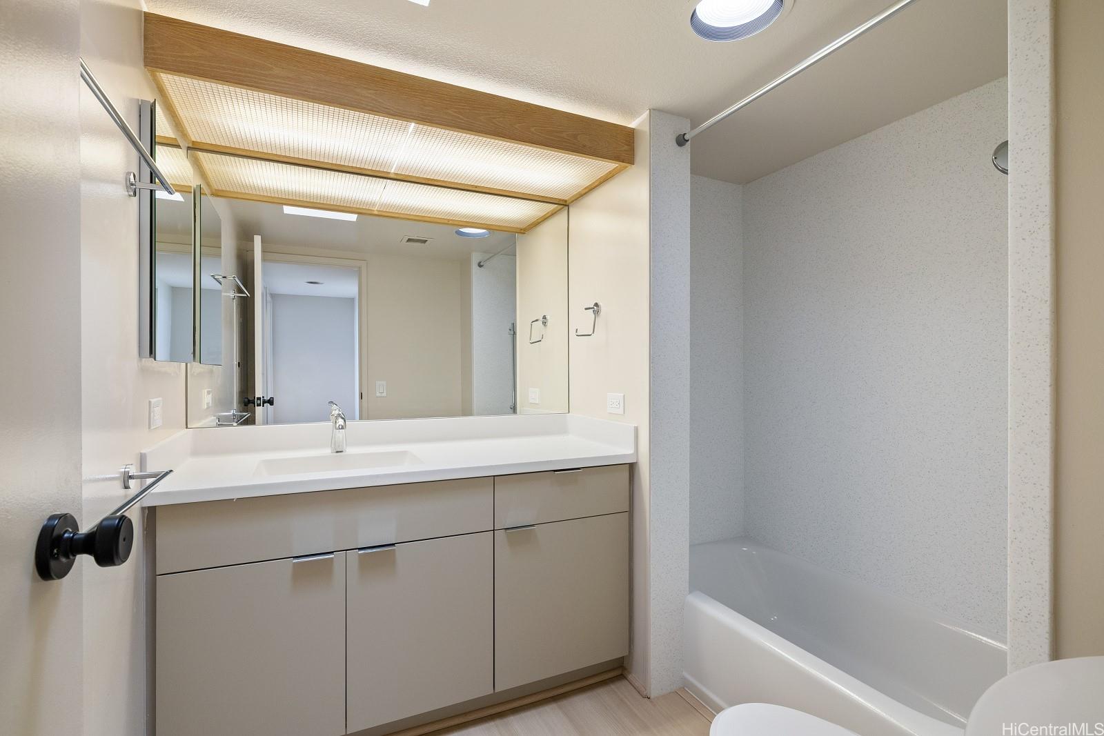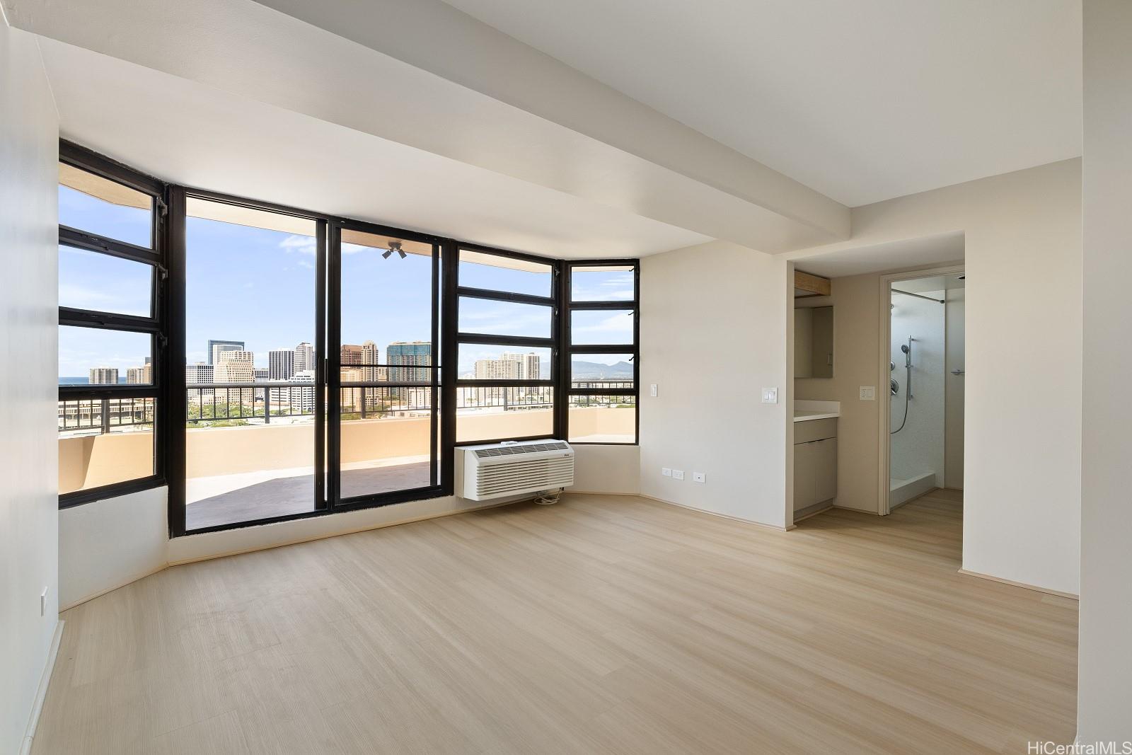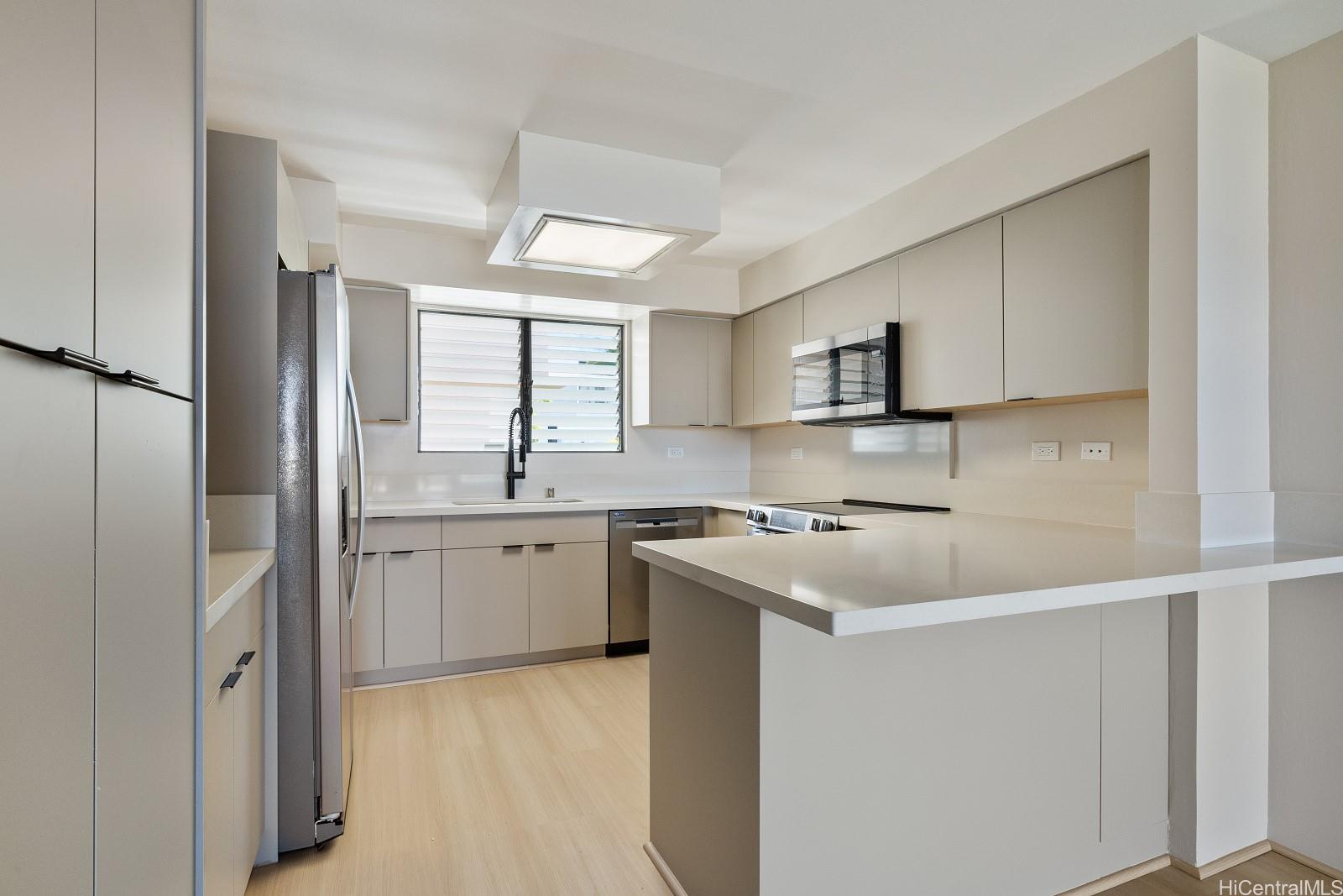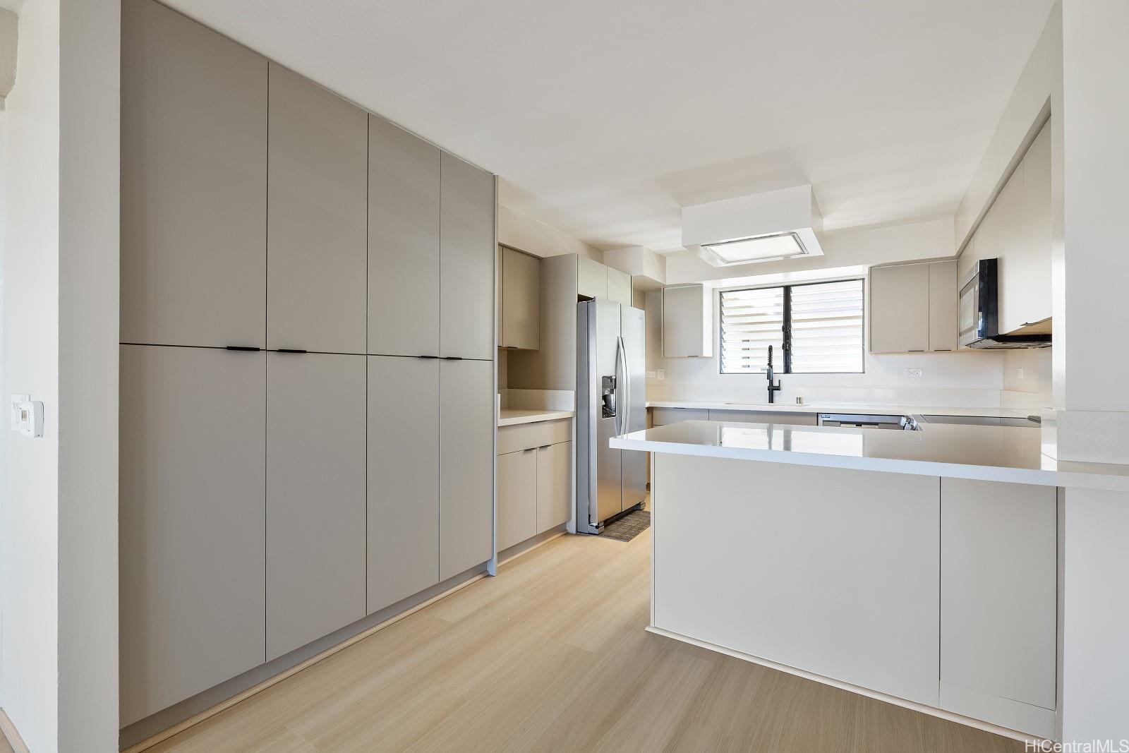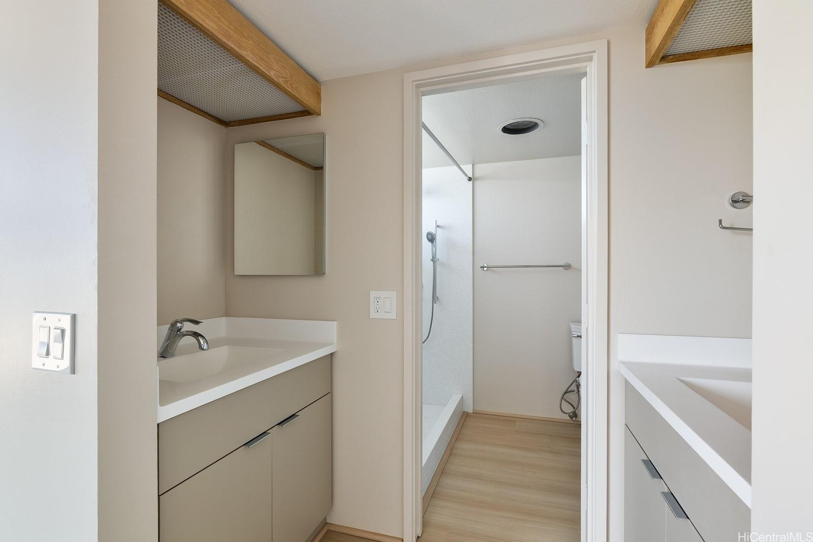 Near complete renovation from top down. Ceiling scraped, walls repainted, new luxury vinyl flooring, new kitchen cabinets, countertops and all appliances. New bathroom shower stall and tub, new surrounding walls, new plumbing, new toilets, faucets along with cabinets and countertops. Large 3 bedroom unit with 2 side by side secured parking stalls in a gated garage. Large open lanai for entertaining or enjoying your morning coffee and brunch or evening cocktails. Only 3 penthouse units on top floor. No smoking/vaping or pets allowed. Long term rental. Full background check by Inforex screening company. $35 per adult tenant.
