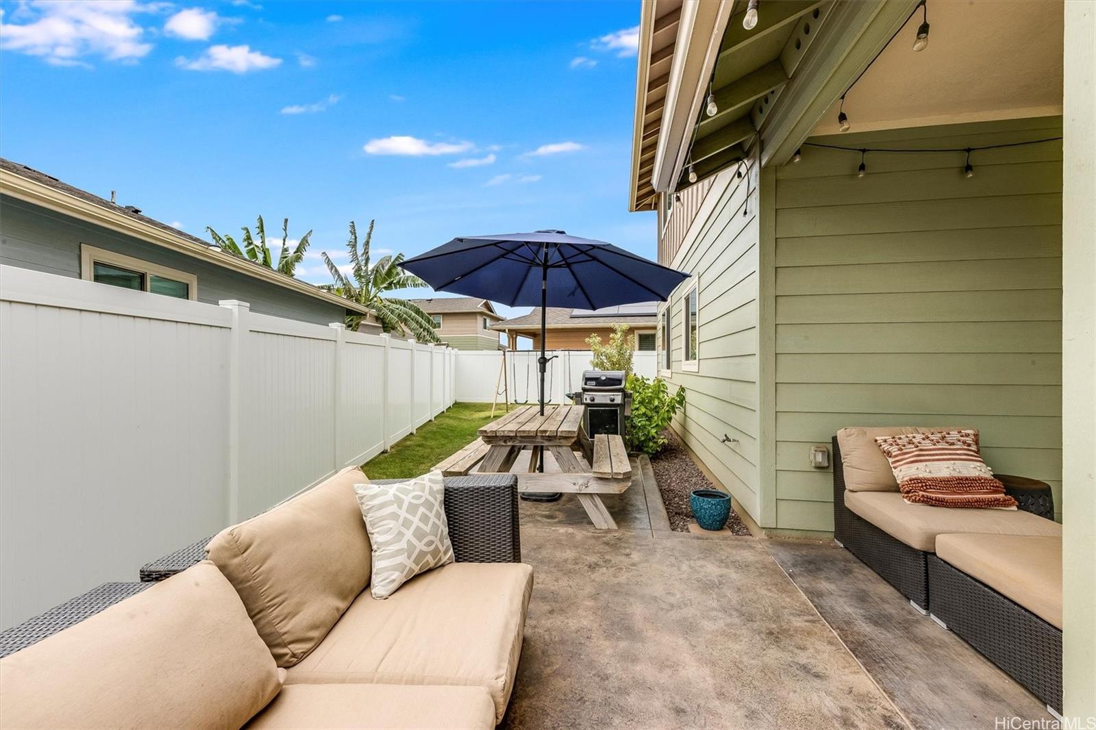 4-bedroom, 2.5-bath single-family home located on Ula Ula Loop in Ewa Beach. This home features solar panels, a fenced-in backyard, and a large patio, perfect for outdoor living. Enjoy the convenience of being within walking