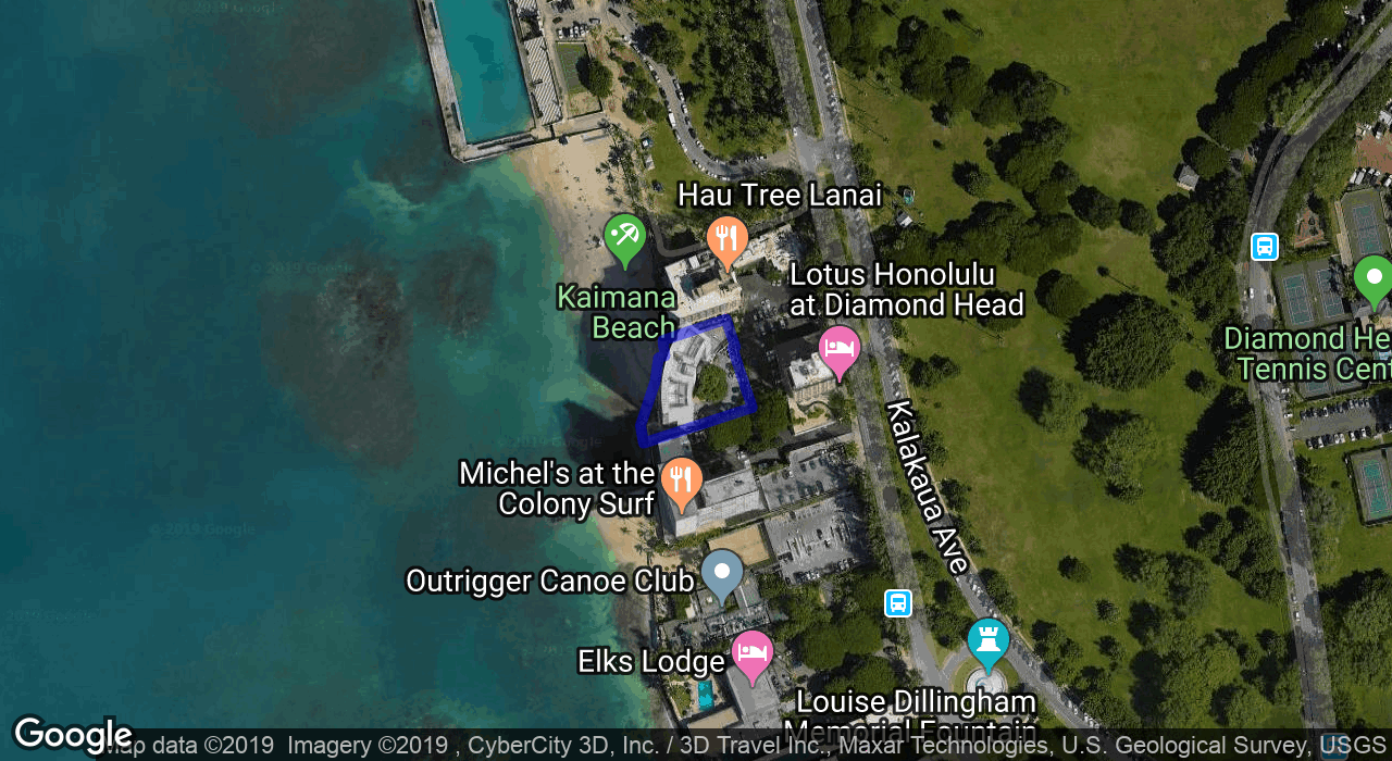 A "TRUE" beach front property of the Gold Coast. Step out of your security gate onto the white sands of the Sans Souci (Kaimana Beach). The slight curve of the building allows unhindered panoramic views of the Pacific Ocean and Waikiki from your 25 foot lanai. From your front door you have a breath-taking view of Diamond Head. Remodeled by well-know Hawaiian designers, this one bedroom, one bathroom condo features ocean blue granite, newer appliances and washer/dryer. Furnishings and appliances are included. One covered parking stall is also included. The Sans Souci is a gated building with a resident manager. This unit has a tremendous rental record.