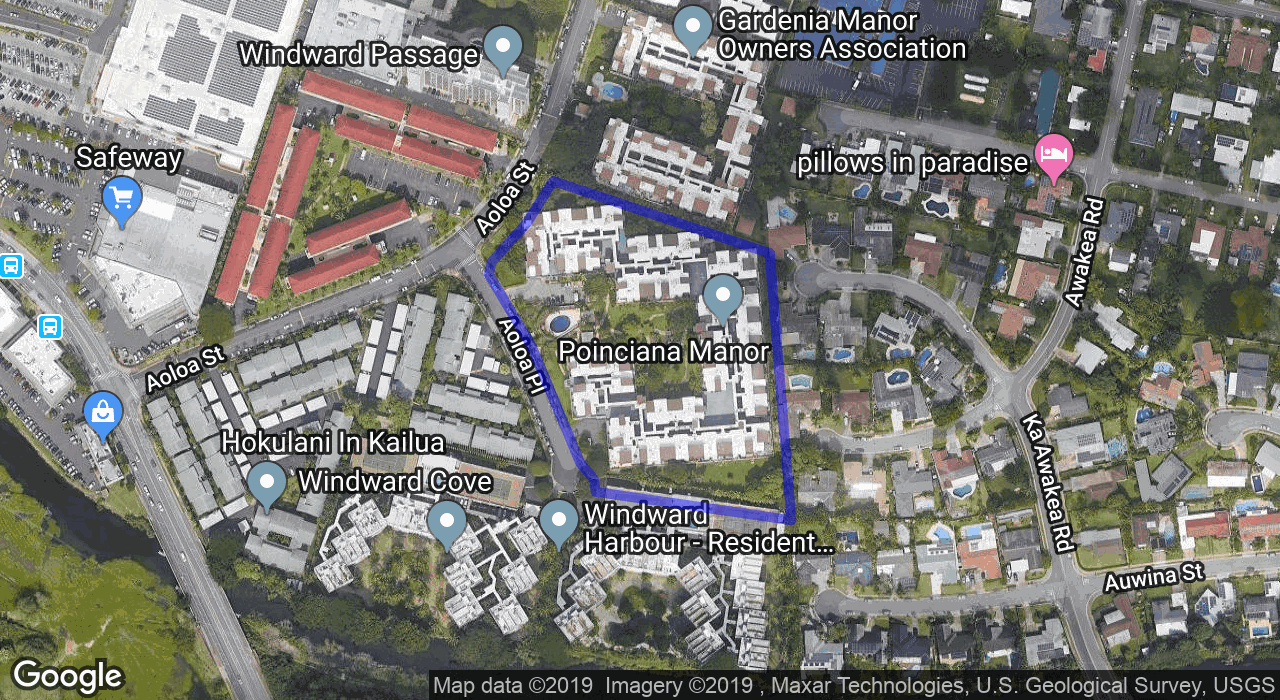 Welcome home to this beautifully upgraded home in Poinciana Manor. This is one of the largest 2-bedroom floorplans in the complex at 959 sqft with an added bonus of a 266 sqft lanai. Located on the windward side of the building, this unit receives refreshing onshore trade winds for a much cooler ambient temperature than other sections of this complex. The living room receives beautiful morning sunlight and after mid morning it is shaded for the rest of the day which helps to keep the unit cool all afternoon and evening. This suite boasts a beautifully remodeled kitchen & primary bathroom. Many other upgrades in 2023 include fresh paint, high quality vinyl flooring, quartz counter tops, new cabinets & kitchen appliances, and smart lighting. This desirable location in heart of Kailua offers an amazing array of amenities. Enjoy the peaceful grounds, entertain in the large open pavilion surrounded by a koi pond, celebrate in the second pavilion with BBQ's, and take a dip in the salt-water pool. Conveniently located just a short distance to Kailua Beach, Target, Whole Foods & shopping. You'll also enjoy the two covered side by side parking spaces and extra storage.