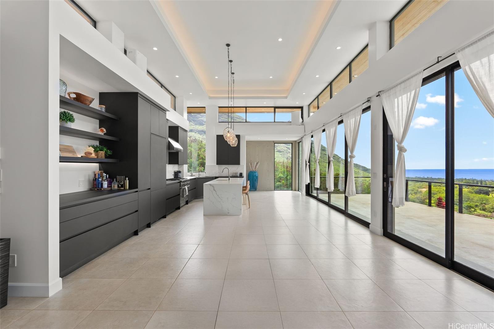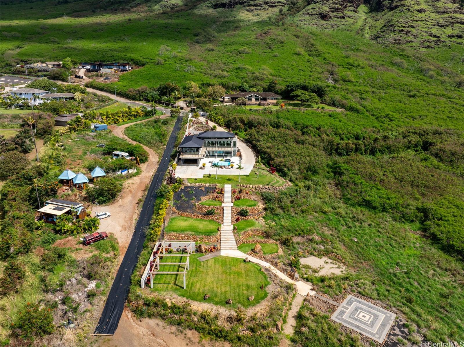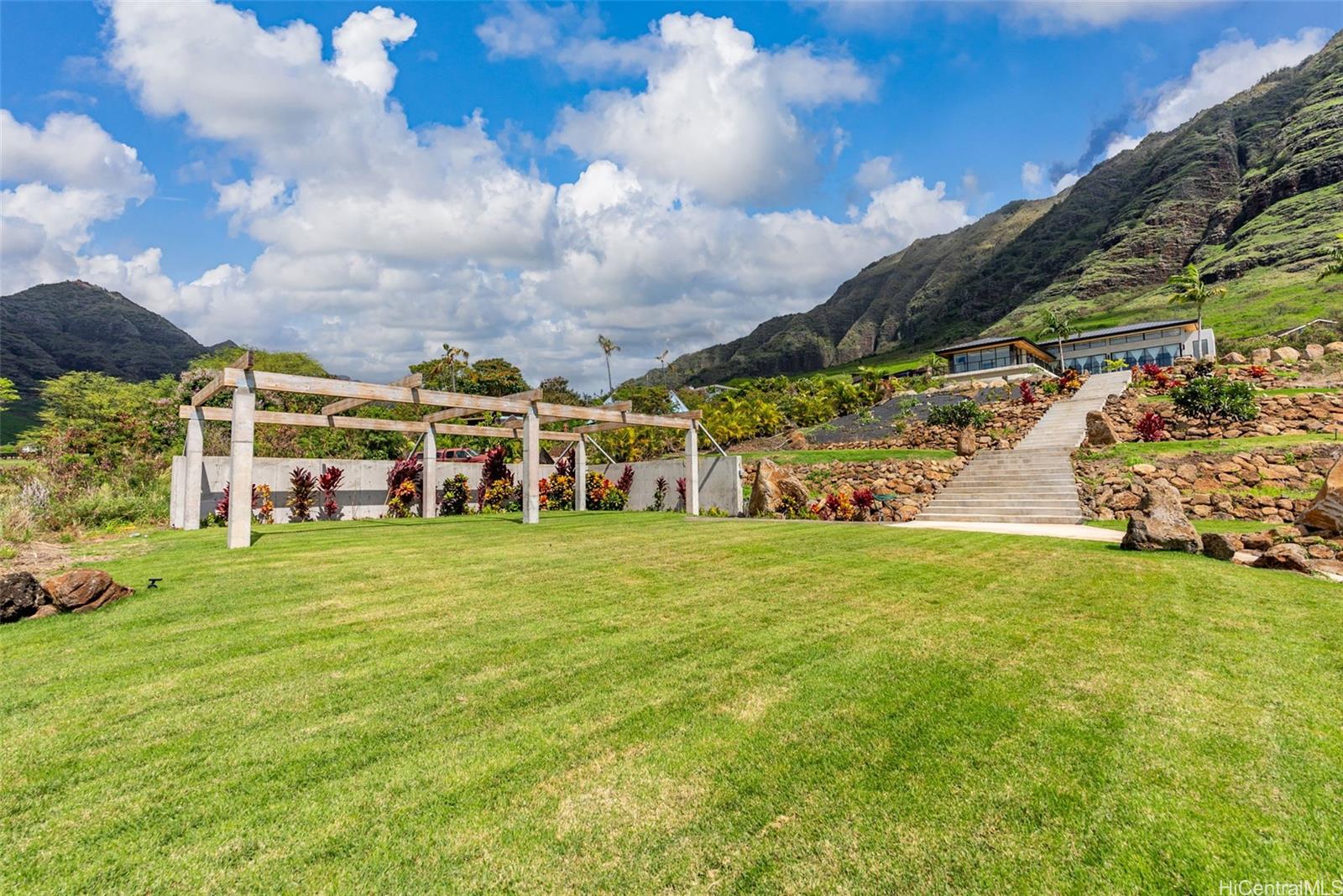 **NOW LOOKING FOR BACKUP OFFER!!!** Exceptional new price for this premier estate! Welcome to 'Hale Makaha', a one-of-a-kind luxury estate nestled in the breathtaking, mountain-backed Makaha Valley within the gated community of Mauna ‘Olu. This elevated 2.009-acre property boasts stunning panoramic views of the ocean, mountains, sunsets, and lush valley surroundings. The main residence is designed for seamless indoor-outdoor living, featuring Fleetwood sliding doors, high-end finishes, a wraparound upper-level lanai, shaded lower deck, home theater, and elevator shaft. Outside, your private resort-style oasis includes a saltwater pool, built-in spa, laminar jets, and an outdoor shower. A landscaped path leads to the lower lot’s garden pavilion—perfect for entertaining, sunbathing, or future development. This estate has also hosted celebrity events and destination weddings, and has rental capabilities. Ample parking includes upper slab space, a long driveway, a carport, and even the ability to pull a car into the home. It's approximately 20 min drive-time to Ko'Olina, and about 45 min to airport (all depending on traffic). 2 TMKs being sold together: 1-8-4-029-148-0001 & 0002.