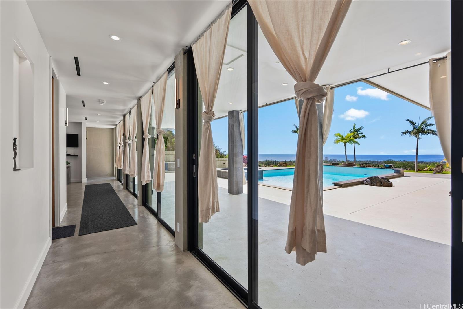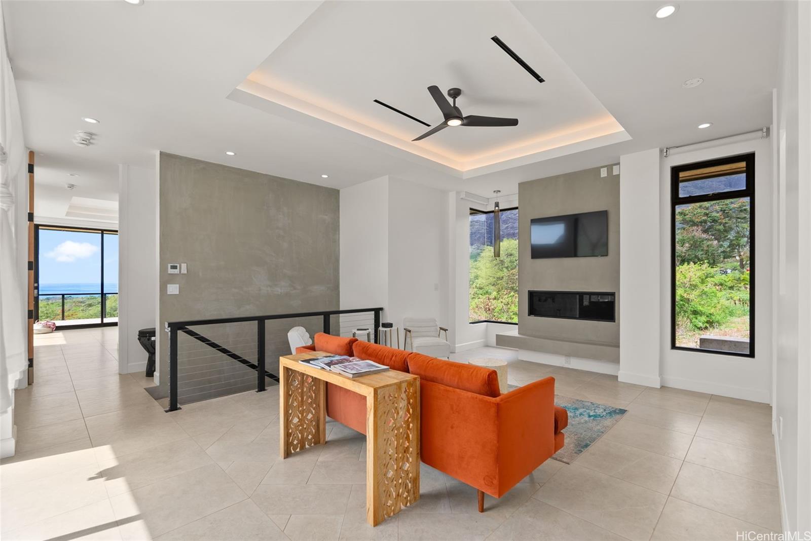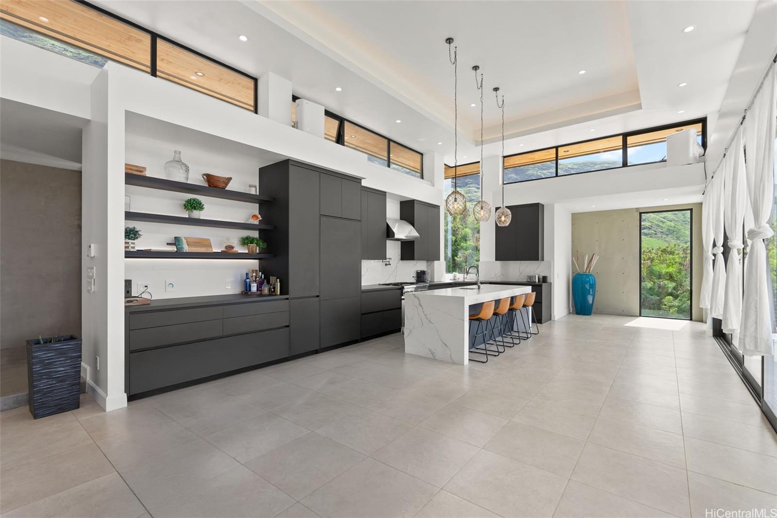 **NOW LOOKING FOR BACKUP OFFER!!!** Exceptional new price for this premier estate! Welcome to 'Hale Makaha', a one-of-a-kind luxury estate nestled in the breathtaking, mountain-backed Makaha Valley within the gated community of Mauna ‘Olu. This elevated 2.009-acre property boasts stunning panoramic views of the ocean, mountains, sunsets, and lush valley surroundings. The main residence is designed for seamless indoor-outdoor living, featuring Fleetwood sliding doors, high-end finishes, a wraparound upper-level lanai, shaded lower deck, home theater, and elevator shaft. Outside, your private resort-style oasis includes a saltwater pool, built-in spa, laminar jets, and an outdoor shower. A landscaped path leads to the lower lot’s garden pavilion—perfect for entertaining, sunbathing, or future development. This estate has also hosted celebrity events and destination weddings, and has rental capabilities. Ample parking includes upper slab space, a long driveway, a carport, and even the ability to pull a car into the home. It's approximately 20 min drive-time to Ko'Olina, and about 45 min to airport (all depending on traffic). 2 TMKs being sold together: 1-8-4-029-148-0001 & 0002.