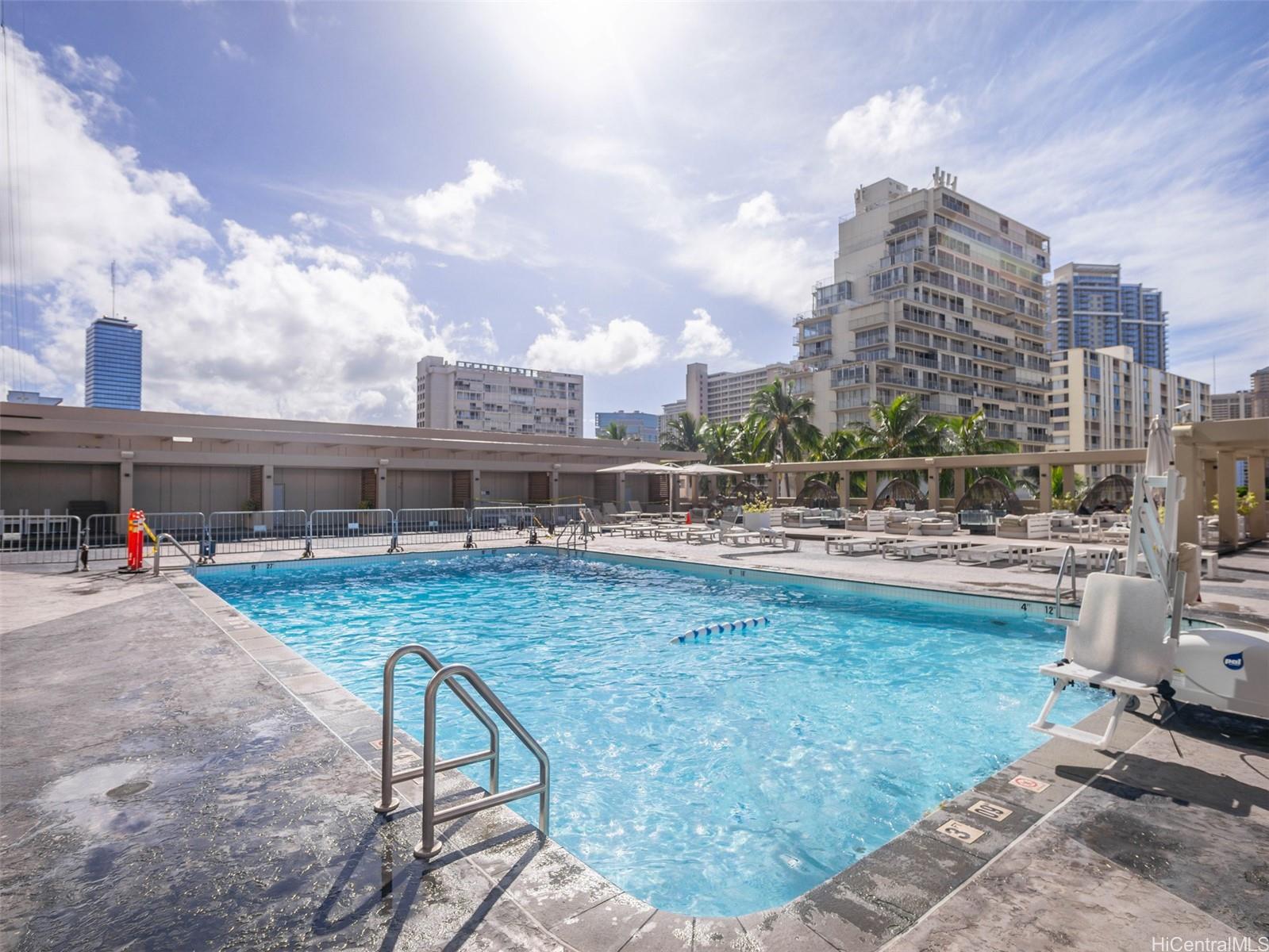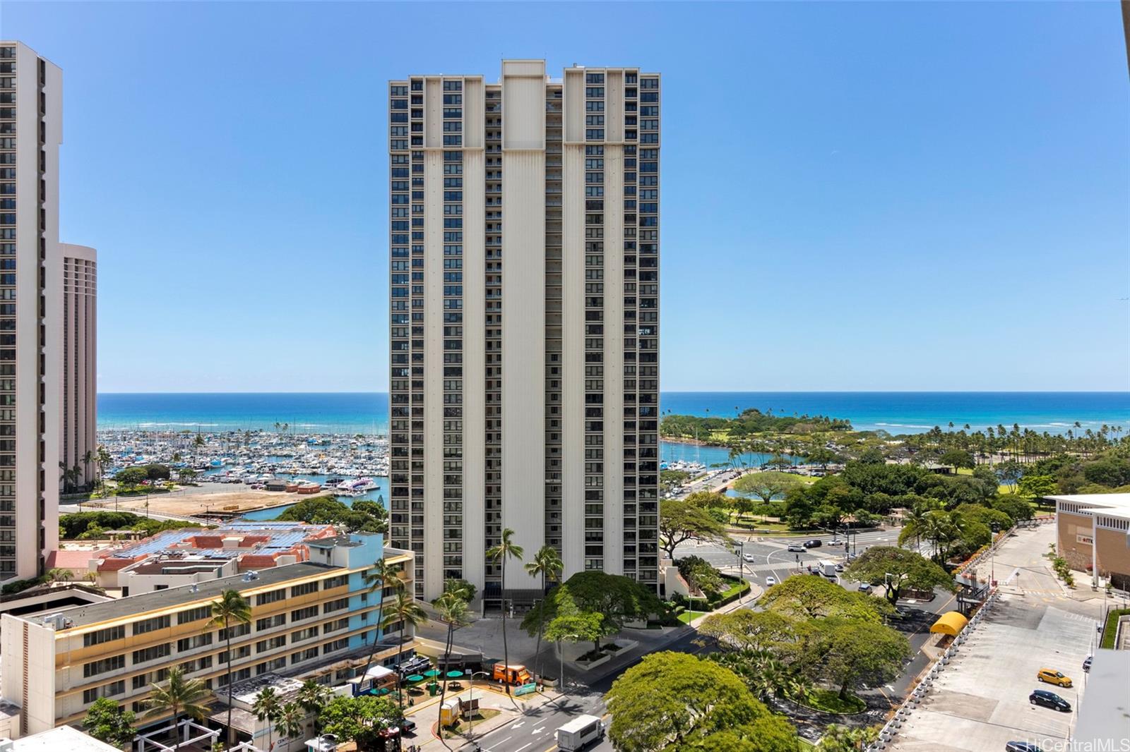 The property benefits from an exceptionally convenient location, providing easy access to Ala Moana Shopping Center. This is a very popular hotel-condominium offering. From the lanai, one can enjoy a breathtaking view of the harbor and ocean. Hotel guests enjoy close proximity to Ala Moana Beach Park, a wide array of restaurants, and numerous shopping destinations. The all-inclusive maintenance fee covers air conditioning, electricity, cable television, Wi-Fi, and water. Building amenities feature a swimming pool, a well-equipped fitness room, and hotel concierge services. This condo is perfectly suited for use as a vacation getaway or as an income-generating rental through the Hotel Rental Program. Sold as is.