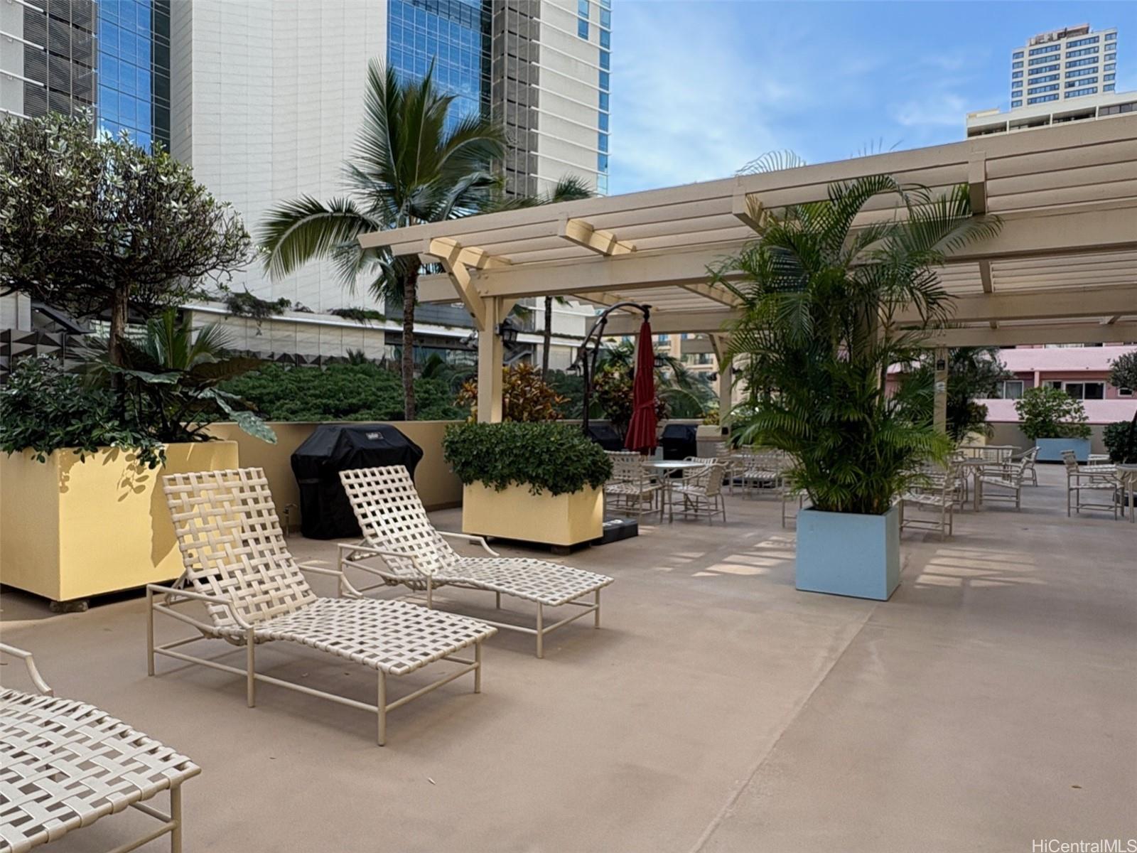 Cool pleasant view off lanai toward mountain and Ala Wai Canal, extra storage in trash chute room, TWO Covered PARKING STALLS in secured garage. Stylish furniture including adjustable bed, sofa sleeper & TV cabinet are available. Well-maintained project with Fifth floor amenities including pool, whirlpool, sauna, rec area. Secured Lobby with comfortable sitting area, guest parking stalls and entrances into project from Launiu and Kaiolu streets -- Great location to enjoy activities and amenities of Waikiki and Ala Wai Canal and convenience to Ala Moana Shopping and so much more.