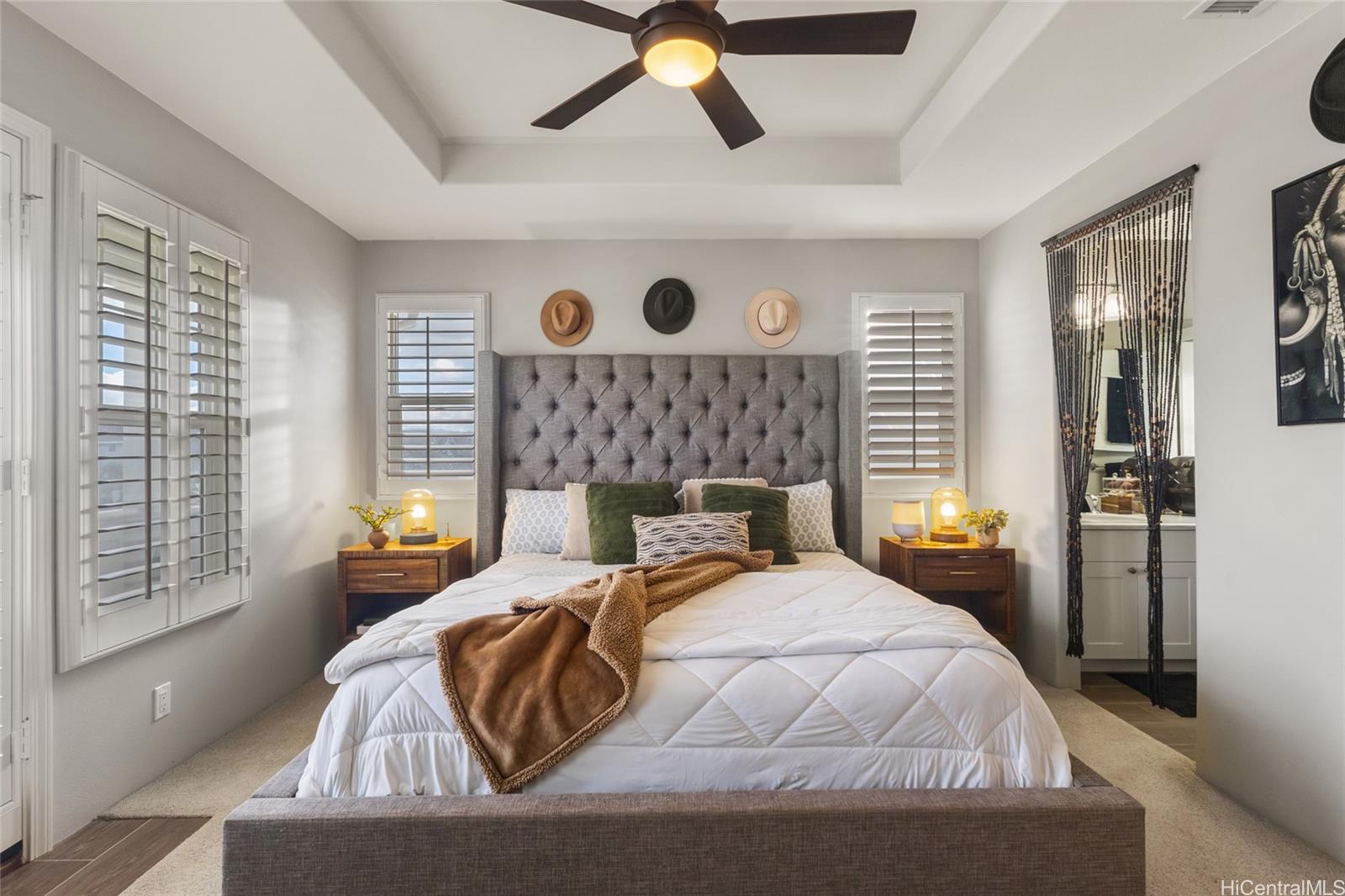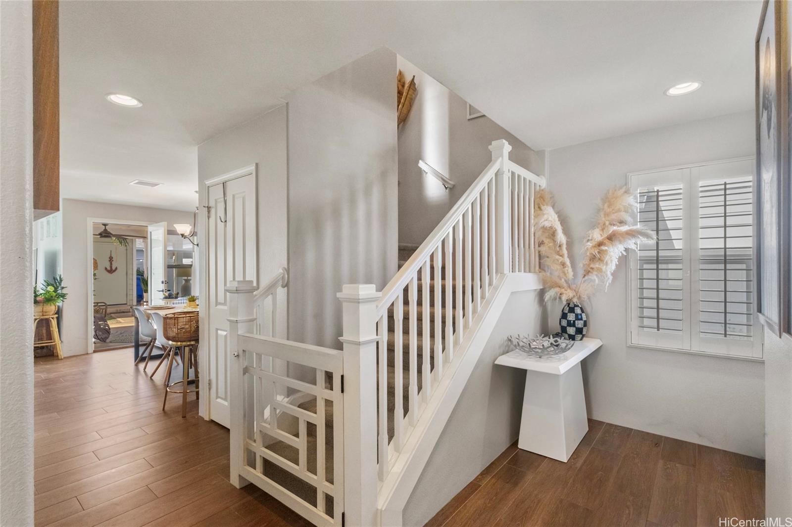 Welcome to Kuapapa at Hoakalei, where everyday feels like a vacation and you’re steps away from the ocean. This move-in ready 4 bedroom, 3 bathroom, Model 25.20 home offers a spacious & flexible layout w/ high-end touches throughout, including plantation shutters, Corian countertops, and stainless steel appliances. The landscaped yard features a smart irrigation system, and the extended lanai is perfect for entertaining or just relaxing outdoors. You'll also appreciate the large 2 car garage. This home comes fully equipped with 16 owned solar panels (5.2kW) & a Tesla Powerwall 2 battery, giving you energy savings & backup power when you need it. As part of the Kuapapa community, you'll enjoy access to the private Wai Kai Lagoon & exclusive neighborhood amenities like the resort-style pool and hot tub. Ideal for soaking, swimming, or simply enjoying the island sunshine. Plus your HOA dues cover cable, high-speed internet, & home phone service, making it even easier to enjoy the lifestyle here. Fully furnished. Located towards to end of Kaileolea Dr., behind Ocean & Halili St. & just a short distance from the ocean.