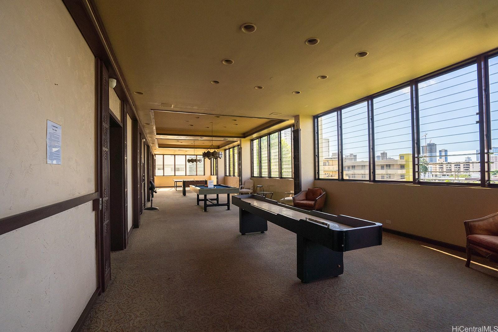 This property is conveniently located in Makiki, offering close proximity to the freeway, local market, and bus lines. The building has undergone several updates, including a plumbing retrofit, spalling repair, painting, and upgrades to the elevators, recreation room, and fitness room.