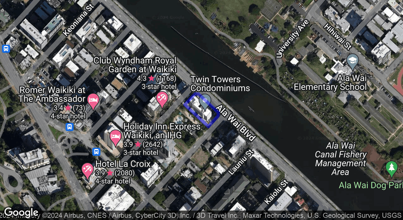 Beautifully renovated 2-bedroom, 1.5-bathroom unit offering 977 sq. ft. of interior living space plus an additional 108 sq. ft. of outdoor balcony with panoramic views of the Ala Wai, golf course, and Honolulu skyline.
