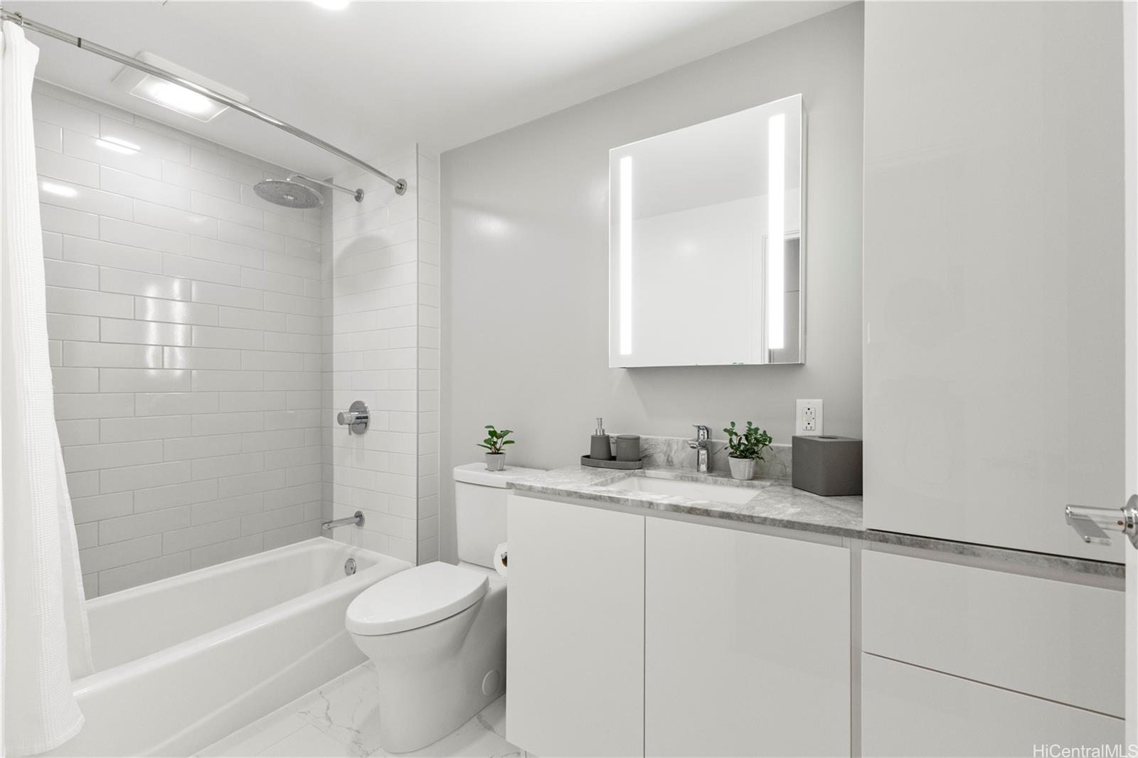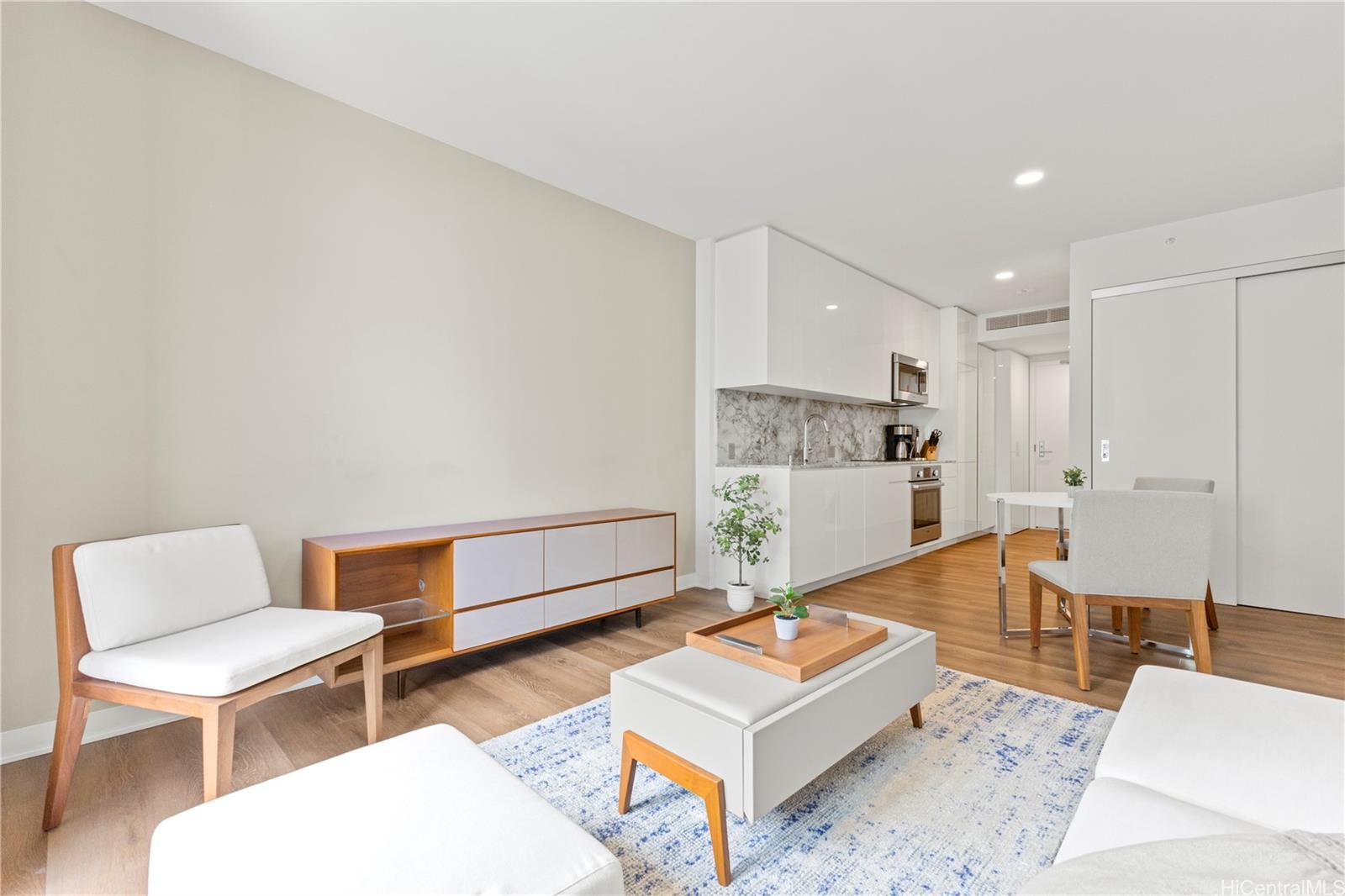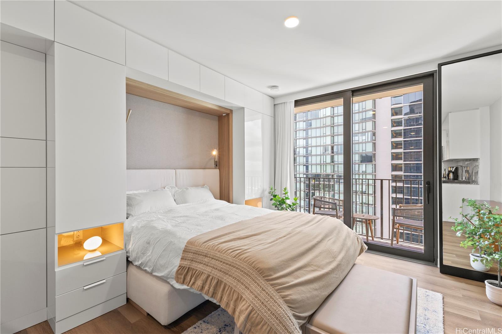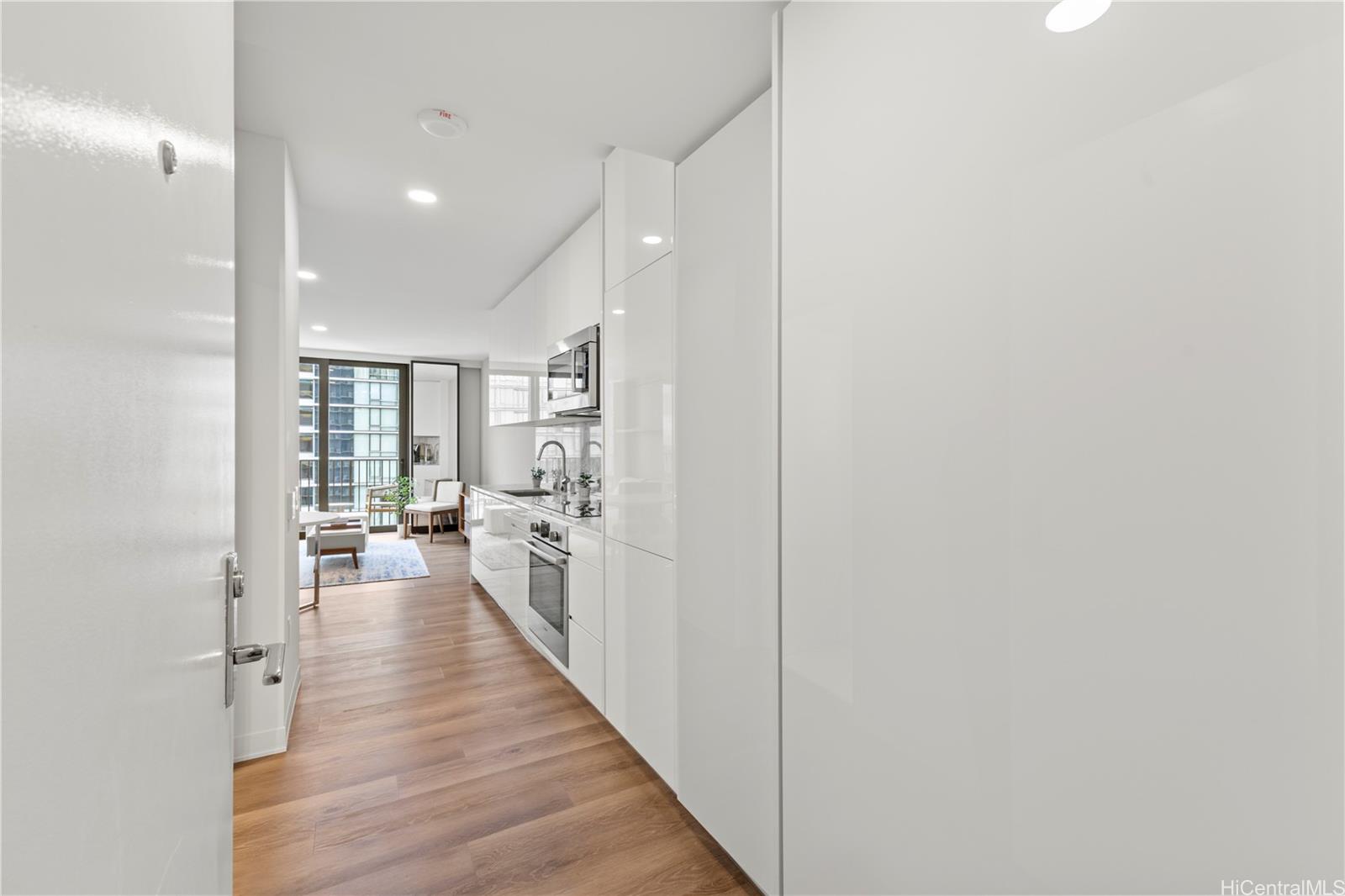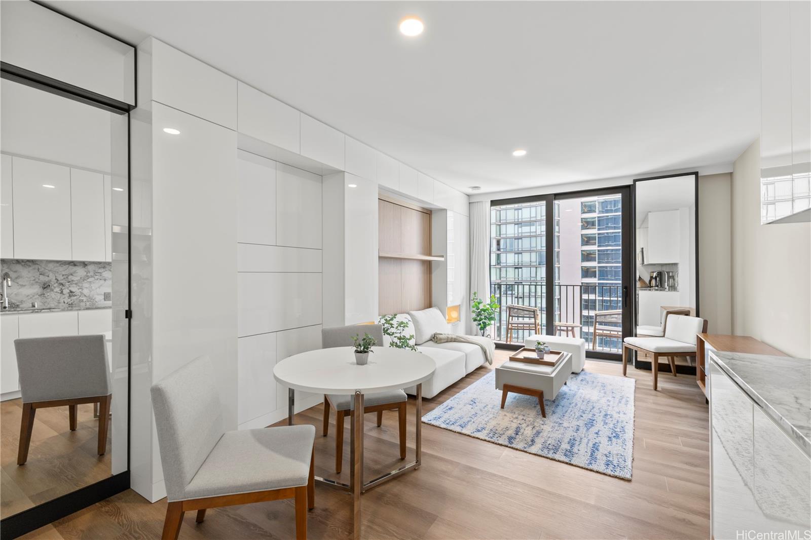 This fully furnished studio with ocean & city views is located in the growing Ward Village area. Aalii offers resort-style amenities. The Sky Lounge on the 42nd floor presents a breathtaking view of the Honolulu skyline with a fitness center, and a yoga room. There is also a swimming pool, jacuzzi, BBQ cabanas on the 8th floor. The little ones can enjoy the keiki pool and playground, while your pets can enjoy the dog run. The Ward village is near by and is walkable, and bike-friendly. Whole Foods, various restaurants, theaters, and shops are all in walking distance. Artificial plants are not part of the sale. All other inventory remains.