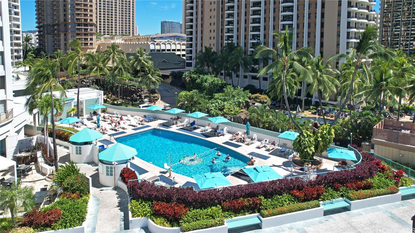 lanai. Updated kitchen with stainless steel appliances, granite countertops, 4 burners stove and ample cabinet space, perfect for preparing gourmet meals. Enjoy a relaxing soak in the bath as there is the bath tub in the unit. Must see the resort-like amenities including two pools., retails shops, beauty shop, and restaurants, If is located in Waikiki which is a famous neighborhood in Honolulu, known for its beautiful beaches, luxury resorts, and vibrant nightlife.