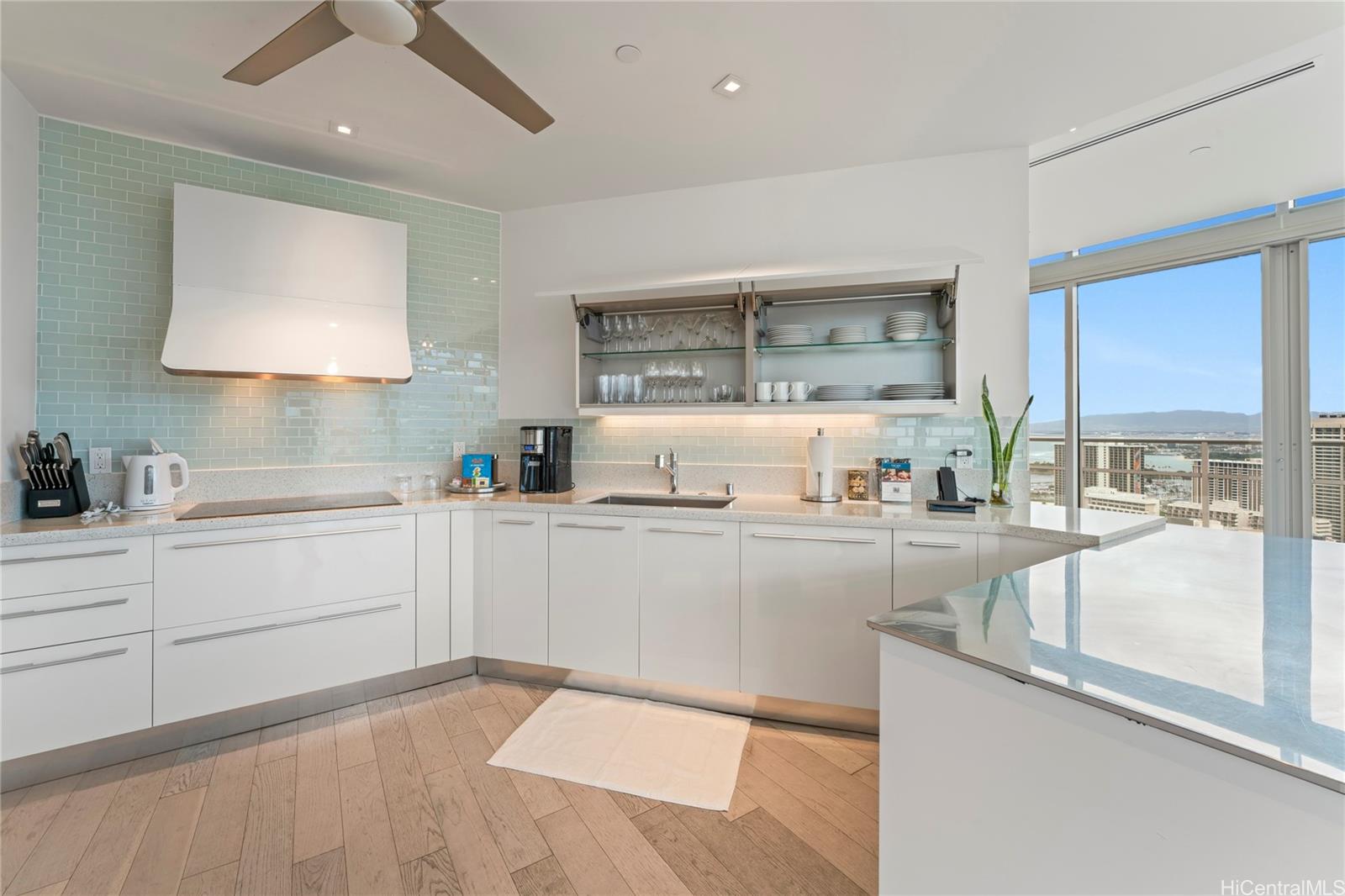Enjoy luxury living in an incredible 180 degree view penthouse the Ka La'i Waikiki Beach, LXR Hotels & Resorts Hotel/Condo! (former Trump International Hotel Waikiki) Common area will be renovated beautifully in 2025. From the moment you enter, you are enthralled with the tasteful decor, beautiful crystal dining chandelier, large panel windows encompassing the breathtaking views, and spiral staircase. Go up the spiral staircase and enjoy spacious rooftop lanai with jacuzzi. This is the time to own an iconic luxurious property right in the vivacious park of Waikiki. Short stroll to well renowned stores, sandy beaches, and restaurants.