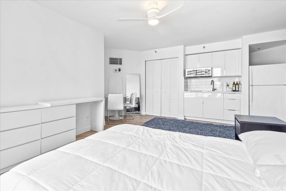Charming, fully renovated studio in the coveted Liliuokalani Gardens with breathtaking Diamond Head and City Views. Includes one assigned parking stall; owner must contact building management for the re-assignment. Annual rental fee: $300. Enjoy resort-like amenities: 24/7 security, koi ponds, swimming pool, rooftop tennis courts, BBQ areas and scenic garden paths. Located in iconic Waikiki, just minutes from famous beaches, restaurants, parks and shopping. You don't want to miss this opportunity!