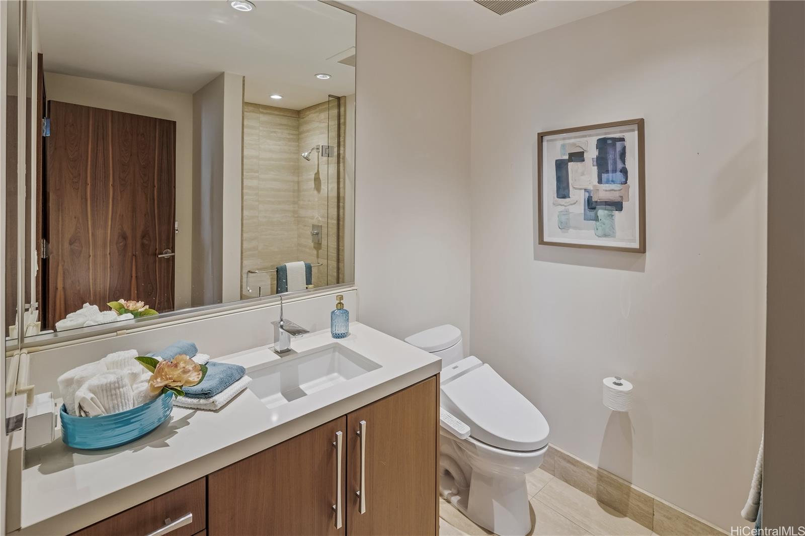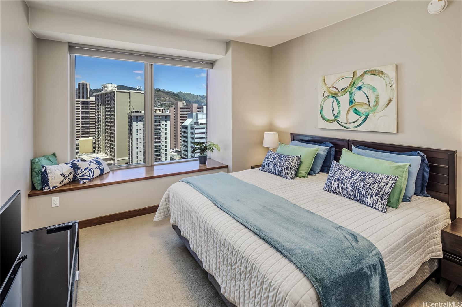 Hardwood floors were refinished just before listing, enjoy cooking with gas, Sub Zero refrigerator and Miele appliances. An open concept design in the kitchen, dining, and living, 2 en-suite bedrooms, guest bedroom, and a guest bathroom. Two side-by-side parking stalls are included, offering direct elevator access to the residence floor without the need to transfer. All furnishings can be included, making the transition effortless for the new owner. The ultimate convenience of daily living with direct access to Ala Moana Center. Shop daily essentials with Foodland Farms, Target, Long’s Drug Store, restaurants from fine dining to food court, and luxury shopping at your finger tips. Resort like amenities include: infinity pool, hot tub, sauna, fitness center, dog park, children’s playground, movie room, private dining, chefs kitchen, guest suites, library, conference room, and more. Secured parking with 24 hour concierge service.