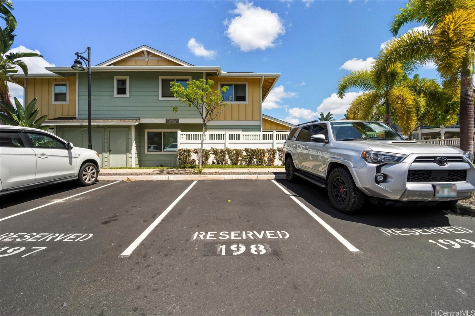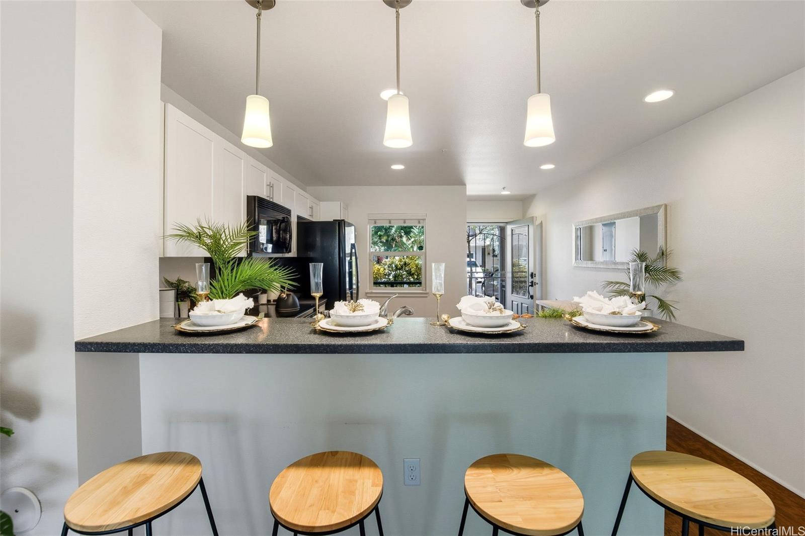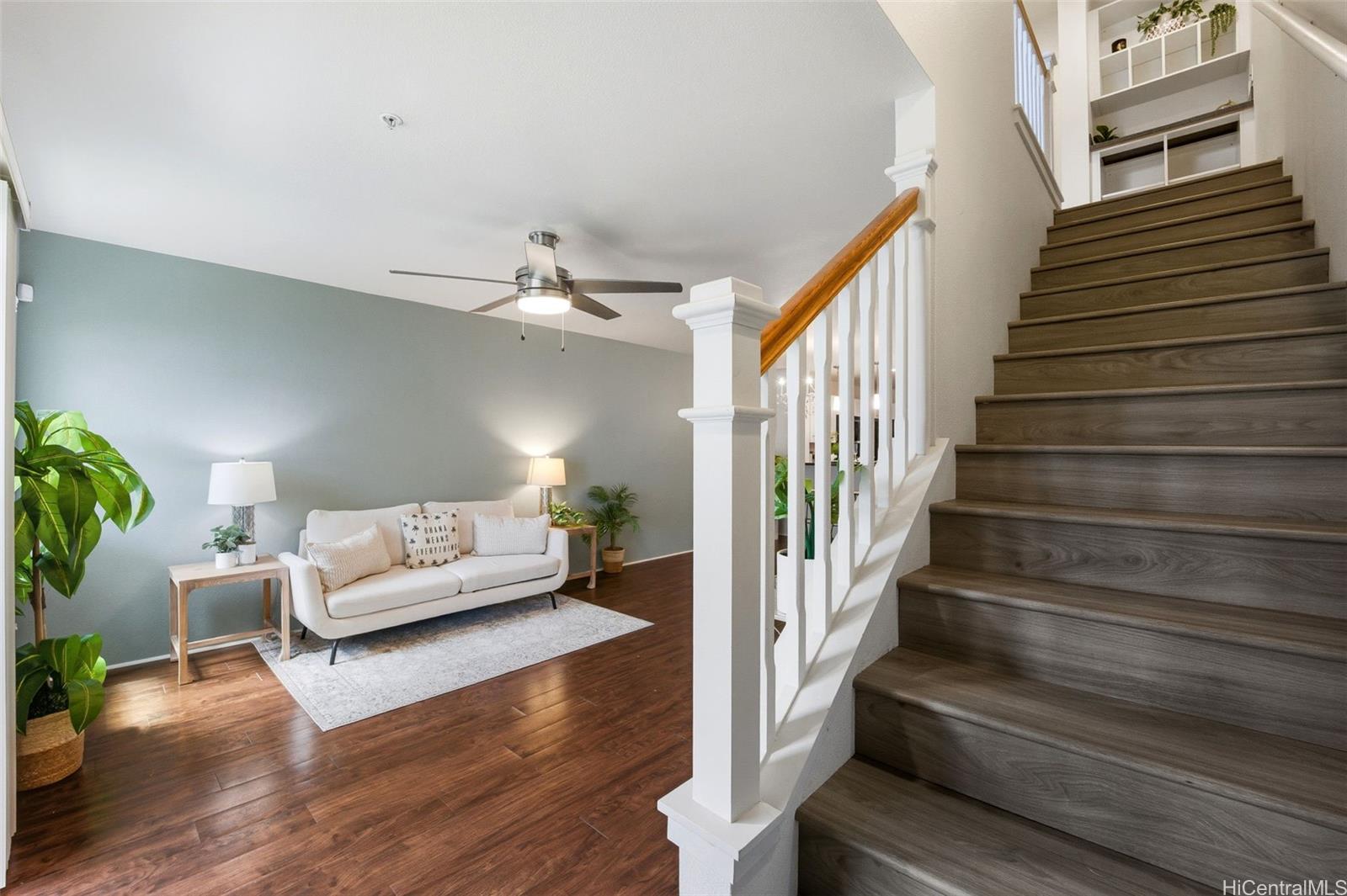 Rarely available in Mehana Olino! This one of a kind 2 story townhome has NO unit above or below and boasts one of the lowest maintenance fees in Kapolei, all while giving you the lifestyle you’ve been looking for. Featuring 2 full bathrooms upstairs, a convenient ½ bath downstairs, and 2 assigned parking stalls just steps away. Enjoy your own private backyard with low maintenance synthetic turf and a cozy lanai, perfect for relaxing or entertaining. Inside, you’ll love the upgraded luxury vinyl plank flooring throughout, Corian kitchen counters, shaker cabinets, and newer appliances (dishwasher, washer, dryer). Split A/C units are installed in every room and living area to keep the home cool and comfortable year round, especially on the cooler side of the community.