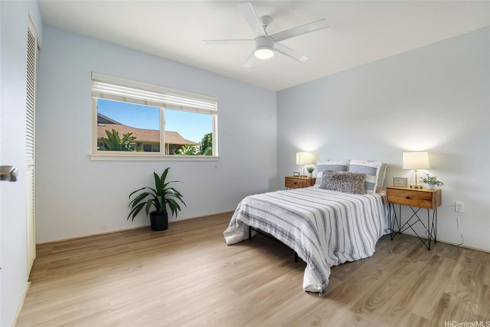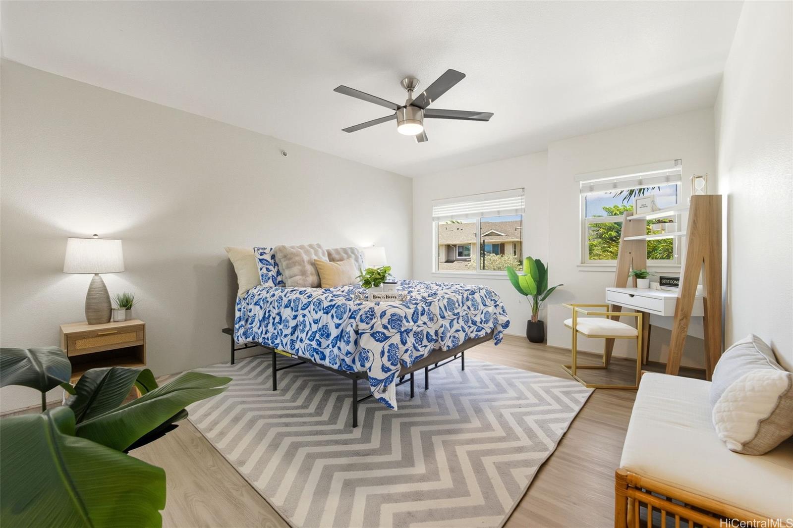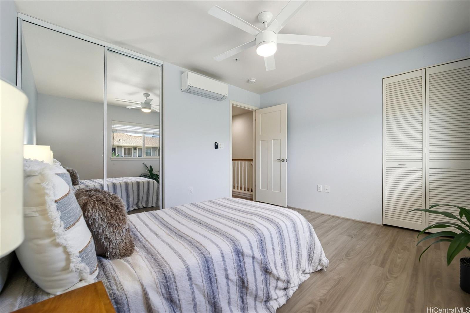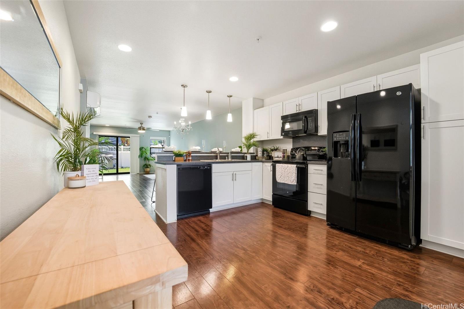 Rarely available in Mehana Olino! This one of a kind 2 story townhome has NO unit above or below and boasts one of the lowest maintenance fees in Kapolei, all while giving you the lifestyle you’ve been looking for. Featuring 2 full bathrooms upstairs, a convenient ½ bath downstairs, and 2 assigned parking stalls just steps away. Enjoy your own private backyard with low maintenance synthetic turf and a cozy lanai, perfect for relaxing or entertaining. Inside, you’ll love the upgraded luxury vinyl plank flooring throughout, Corian kitchen counters, shaker cabinets, and newer appliances (dishwasher, washer, dryer). Split A/C units are installed in every room and living area to keep the home cool and comfortable year round, especially on the cooler side of the community.