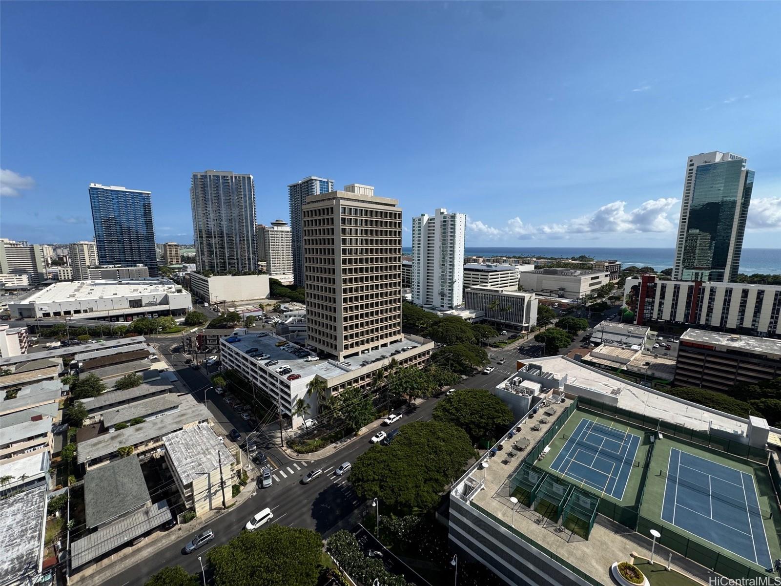 Welcome to Moana Pacific – Luxury 2-Bedroom Condo with Den, Storage, and 2 Parking Stalls. Experience modern urban living in this beautifully appointed 2-bedroom, 2-bathroom residence at the highly desirable Moana Pacific. This unit includes two parking stalls plus additional storage #330, offering both comfort and convenience. The unit is elegantly upgraded with luxury engineered hardwood flooring throughout and features a versatile den, ideal for a home office, study, or creative space. Large windows invite in natural light, enhancing the spacious open-concept design. Moana Pacific provides an exceptional lifestyle with a host of amenities, including BBQ grills, tennis courts, a fully equipped fitness center, golf putting green, and a dedicated kids’ playground. Perfectly located in the heart of Honolulu, this residence is just minutes from Ala Moana Shopping Center, Ala Moana Beach Park, renowned dining, entertainment, and more. This property is being sold AS IS with no concessions, credits, or repairs offered.