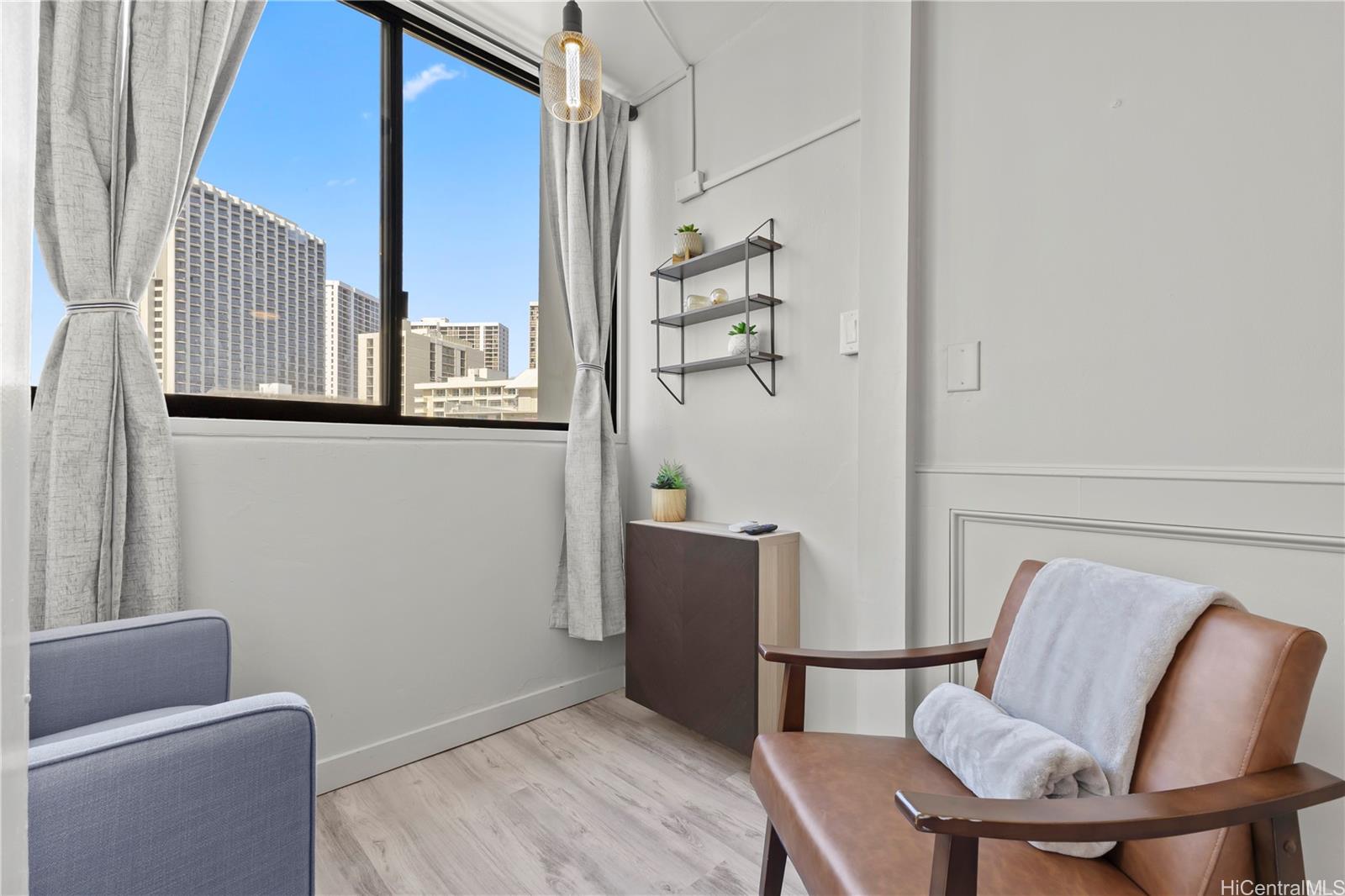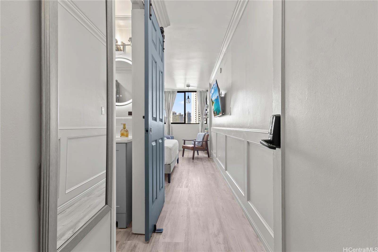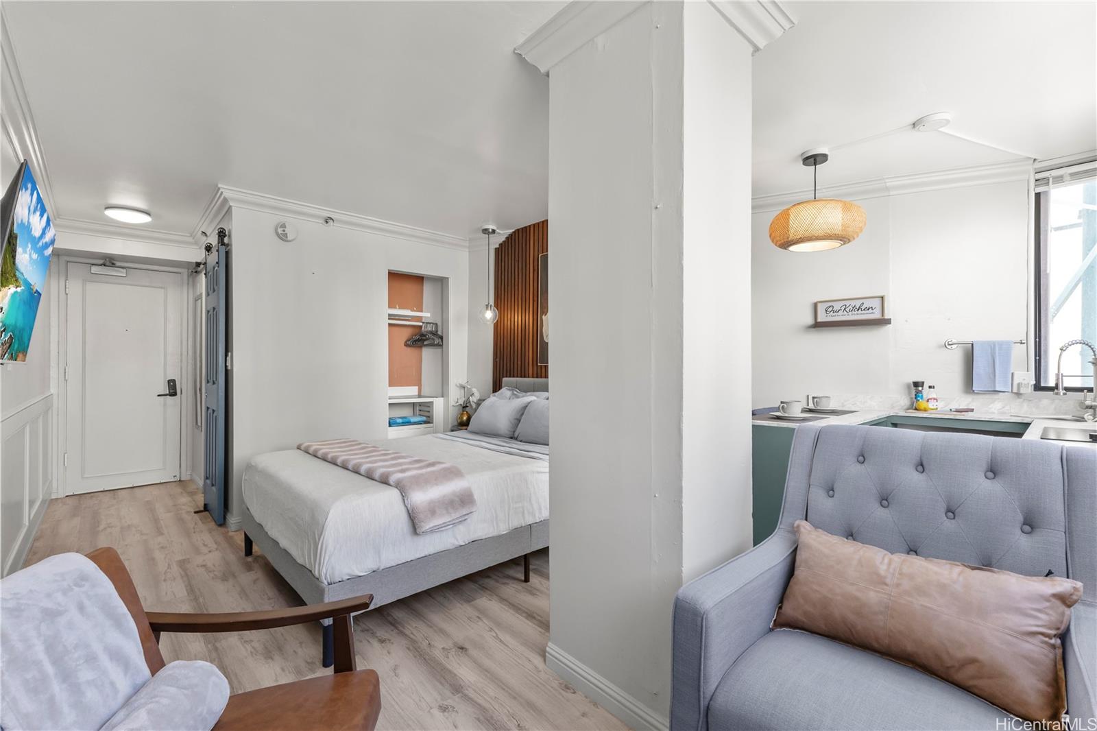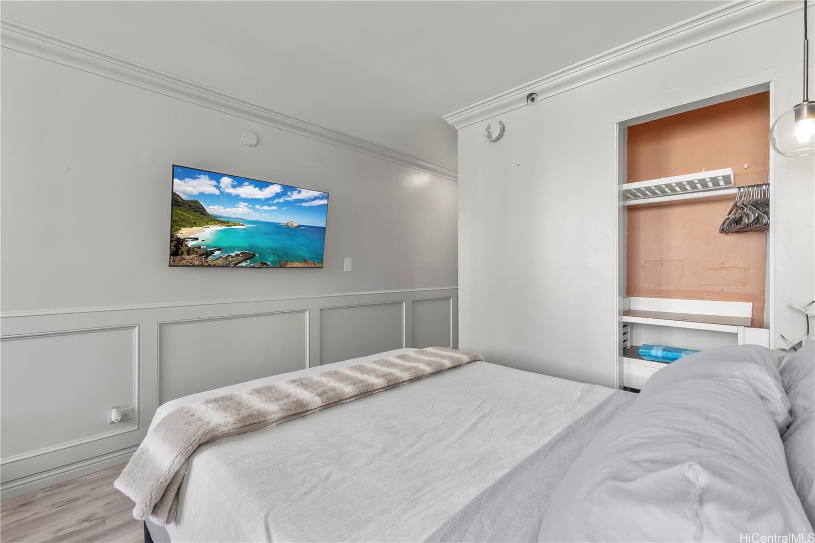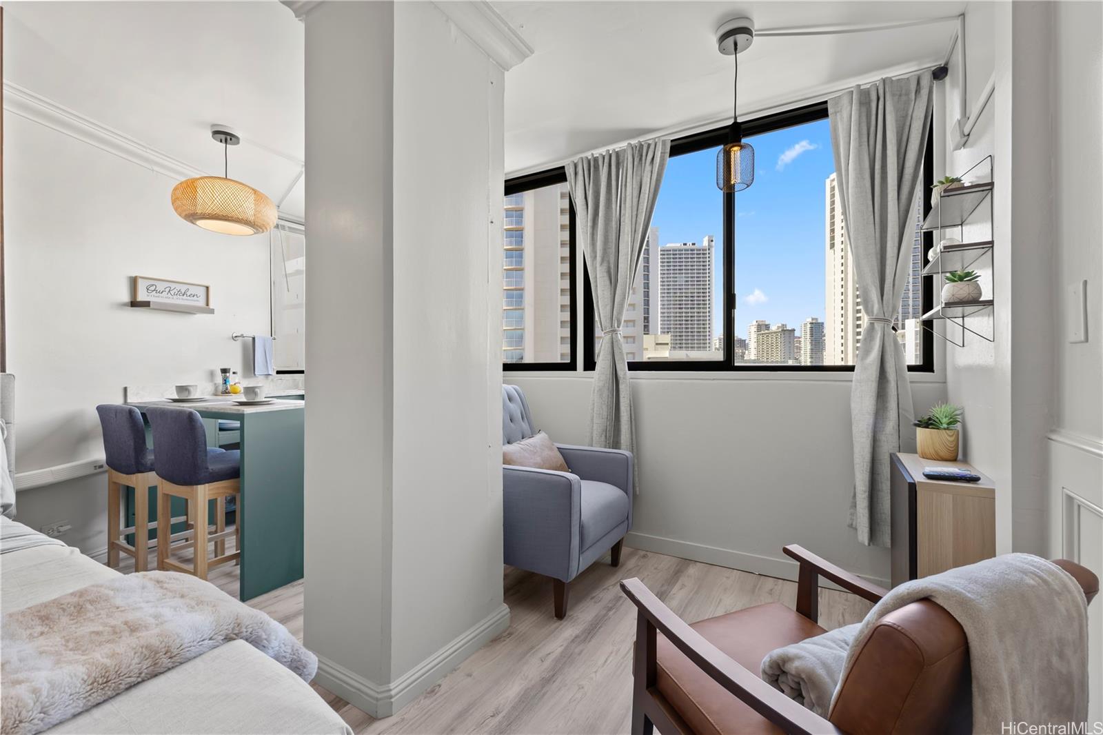 Discover this exquisite 240 sq ft studio condo at the Waikiki Grand Hotel, a prime investment opportunity just 2 minutes from the world famous Waikiki Beach! This is a turnkey unit showcases a contemporary modern style blending sleek design with functional elegance, making is perfect for a short term rental or personal use.