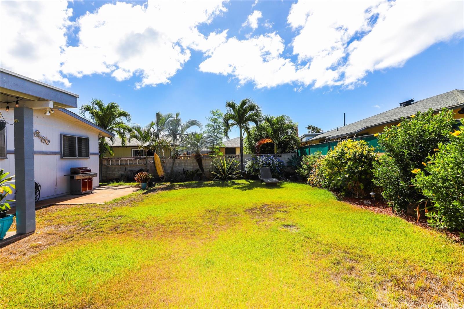 Desirable Ranch Style single level home in beautiful Ewa Beach, Oahu, Hawaii. Bonus: Home comes with a separate living area for a possible rental or for family to live in. Property has been cared for throughout the years. Electrical & plumbing & PV Electric (owned & paid for) upgrades through the years as well. Exterior walls surround both the front and back yards along with a gated entry. This provides both security and lots of room for outside enjoyment and lots of space for animals to enjoy. The permitted extended family room and detached bonus room has a full bath, solar water heating and much more. Selling As Is and listed under market value for an expedited sale.