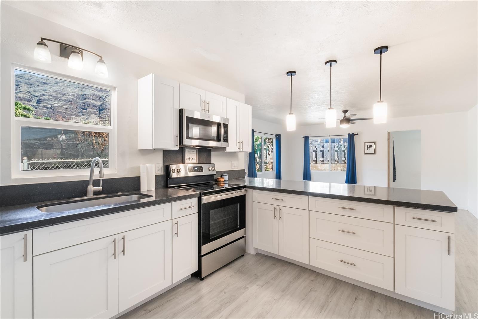 Welcome to this charmingly updated home nestled in the heart of Waianae. Featuring a brand-new roof, updated kitchen cabinets, open concept living room and fresh flooring throughout, this move-in ready property blends comfort with style. Enjoy the generous living space and the convenience of a large, fully fenced yard - perfect for entertaining, gardening, or pets. Located near beaches, schools, and shopping, this home offers both tranquility and accessibility. Don't miss your chance to own a piece of paradise on the West Side!