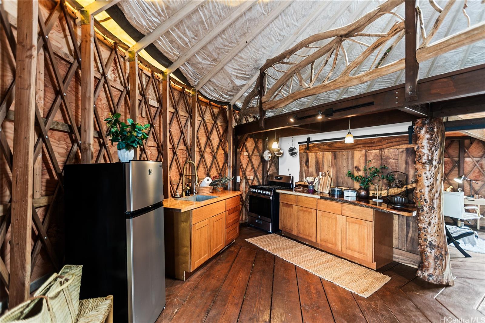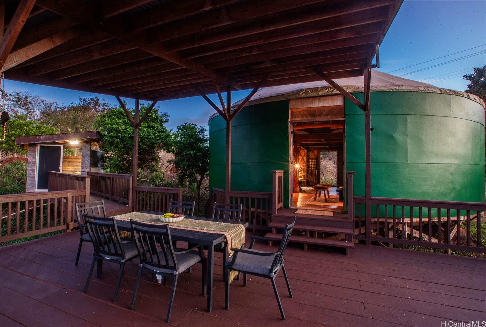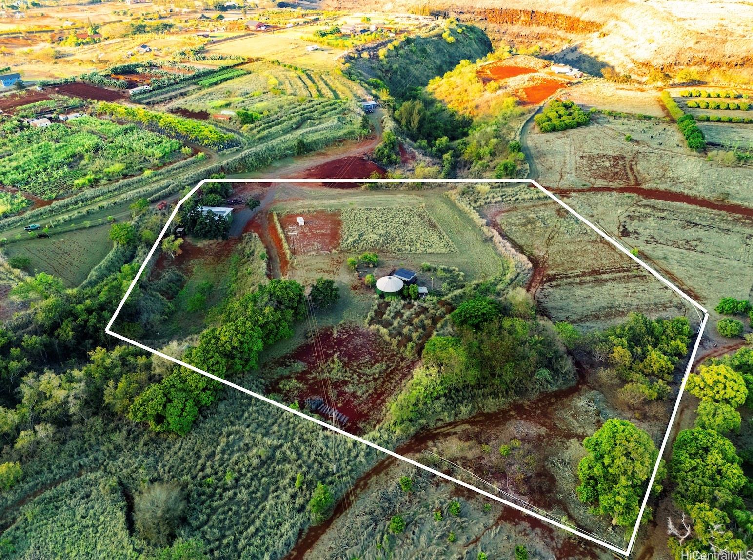 6.5-acre AG-zoned property in the foothills above Haleiwa—just 10 minutes to the beach and H-2. A new 3, 000 sq. ft. agricultural building with kitchen and bath pairs perfectly with a one-bedroom, one-bath yurt. Enjoy solar and propane service, private potable well water, septic system allowed, and HECO power availability. The land features mango, starfruit, and citrus trees, irrigation water, and even goats—all set against stunning mauka-to-makai views. A peaceful North Shore agricultural property with endless potential.