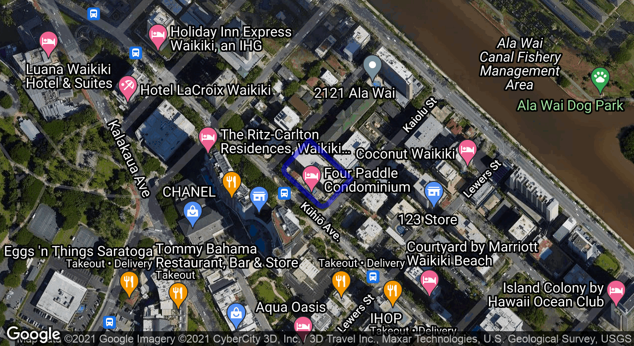 Comfortable CORNER fully furnished unit with extra living room window, Double Lanai (99 sf) and 1 secured parking stall! Easy to enjoy the amenities on the same floor - Pool, Hot Tub, BBQ and Picnic areas! Maintenance fee includes Central Airconditioning, Electricity, Water, Sewer, Internet & Cable TV! Well managed building with 24 hour security! 100% hurricane insured! Great middle-of-Waikiki location across from Ritz Carlton hotel and an easy walk to the beach, shops and restaurants!