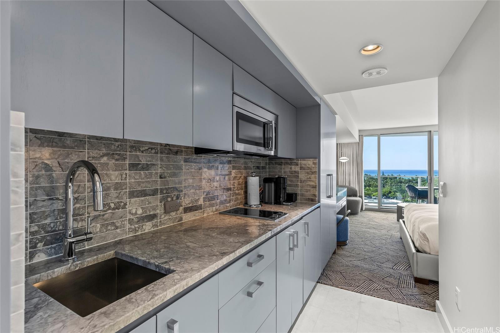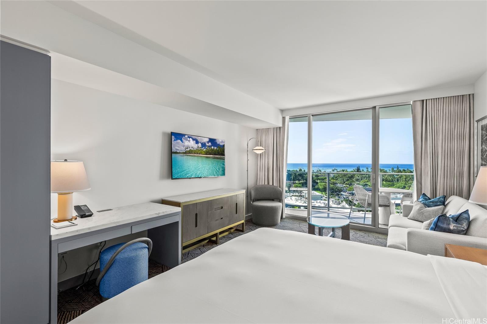 Enjoy luxury living at The Ritz-Carlton Residences Waikiki Beach. This Ewa Tower studio residence has been renovated and comes fully furnished with linens, kitchenware, upscale appliances, marble bathroom walls and countertops and washer dryer. Resort-style amenities feature two sparkling pools, a modern fitness center, concierge, and valet services, plus a popular deli/cafe. Easy access to hundreds of restaurants and events in Waikiki. Unit is currently not in hotel pool.