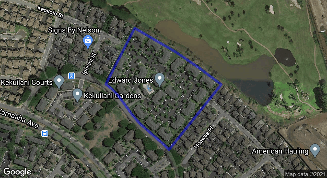 2 bedroom, 2 bathroom, 2 parking ground floor, single level corner/end unit facing Kapolei Golf Course with split A/C and OWNED PHOTOVOLTAIC PANELS! The only unit in Kekuilani Villas currently allowed to have PV panels, enjoy watching golfers while lounging in your cool living room knowing that your electricity bill will be a minimum. Prefer fresh air? No problem...cool breezes and ceiling fans are another option. For those who love to cook, this unit features a gas stove/oven. Bamboo hardwood floors, tile in bathrooms, solid wood "Kraftmaid" brand cabinets throughout, and a private layout with the bedrooms and bathrooms at opposite sides of the home. Includes two parking stalls just outside of your unit, and ample guest stalls for friends and relatives.