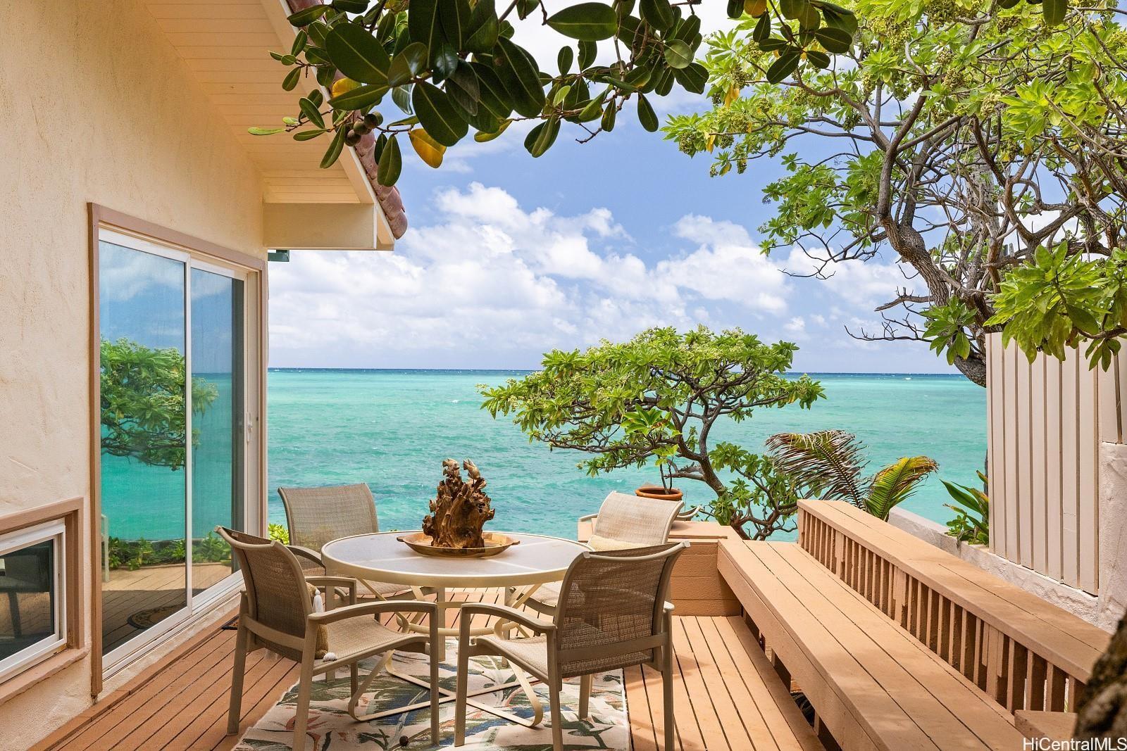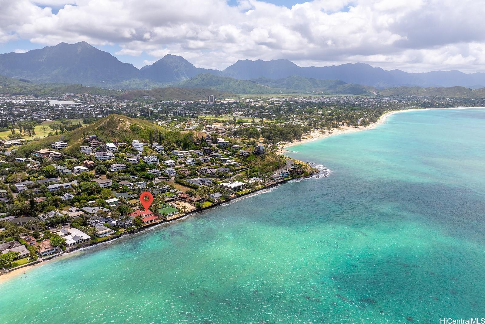 Fabulous Waterfront Estate in Lanikai!! A tropical serene oasis where you can entertain with ease in multiple outdoor areas, designed for seamless indoor-outdoor living. Lounge by the pool or gather on the expansive veranda while enjoying the gentle ocean breeze, sounds of lapping waves and regular turtle visits. Once inside this solidly built home, breathtaking panoramic views of the Pacific take over the senses from nearly every room of this open floor plan. The 2nd level offers 4 bedrooms w/vaulted ceilings. The primary bedroom’s expansive windows frame the sunrise over turquoise waters, creating a picturesque start to each day. Step out to a wrap around lanai where 2 additional rooms enjoy sunrise views as well. Privacy is paramount in this oasis, where every corner of the property exudes a sense of calm and seclusion. Convenience is also key as well here, just half a block from the start of world famous Lanikai Beach, 1 block from the start of Kailua Beach and 2 blocks from Mid-Pac. This home is more than a residence; it's a charming sanctuary promising a lifestyle that is both serene and inspiring.