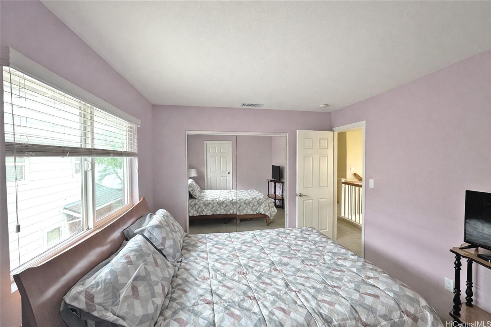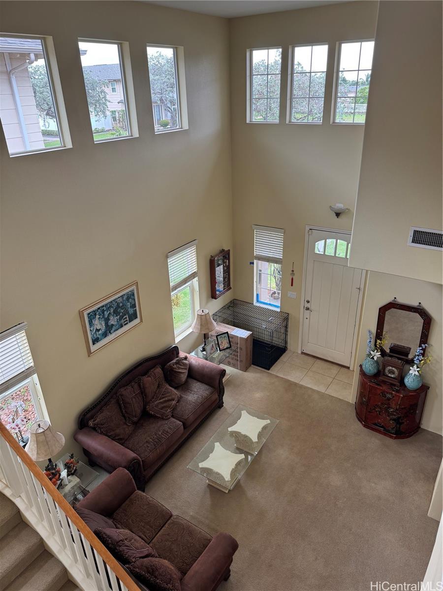 This Lovely 402 model Executive Home offers Relaxed Island Living. Bright, open floor plan featuring 4 nice size bedrooms, 3 full bathrooms, 3 parking and located on a very desirable quiet street with a private community park. There is a large bedroom and full bath downstairs perfect for guest, family or office. 3 Bedrooms upstairs. The main/primary bedroom has a large walk-in closet and a large Luxurious bathroom with separate shower and tub. The other bedrooms are generous in size sharing a Jack n Jill bathroom. You will feel the comfort of this home immediately walking through the entry with the High windows and cathedral ceilings capturing the natural light throughout the house. Upgraded flooring incentives offered. Choose your own style. 34 owned PV solar panels on the NET METERING agreement with HECO to lower electric bills. 2 Solar hot water heaters with 3 panels. Newer over sized Rheem HVAC system and handler. This home is very spacious inside and outside for entertaining and your own everyday comfort and enjoyment. Minutes away from the beach, golf courses, shopping, schools and so much more. This is a great opportunity with all this home offers! Open House Sunday 2-4.